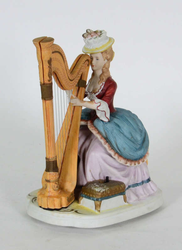 Estatueta de porcelana , moça com harpa