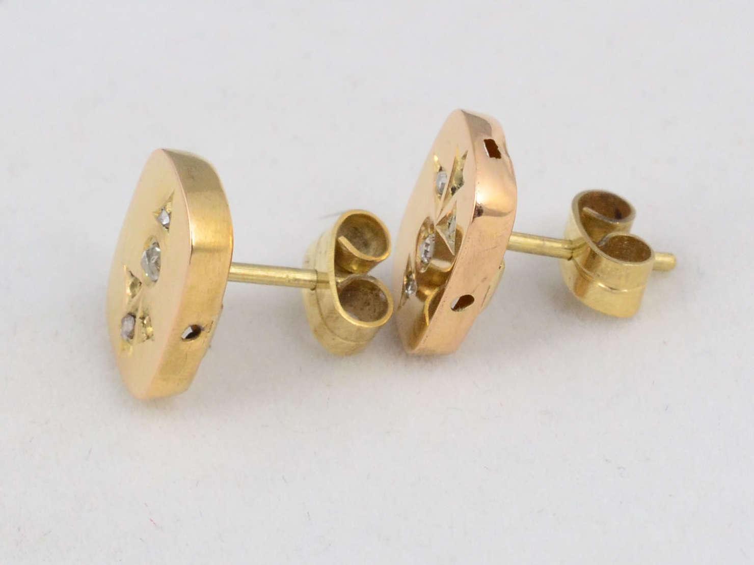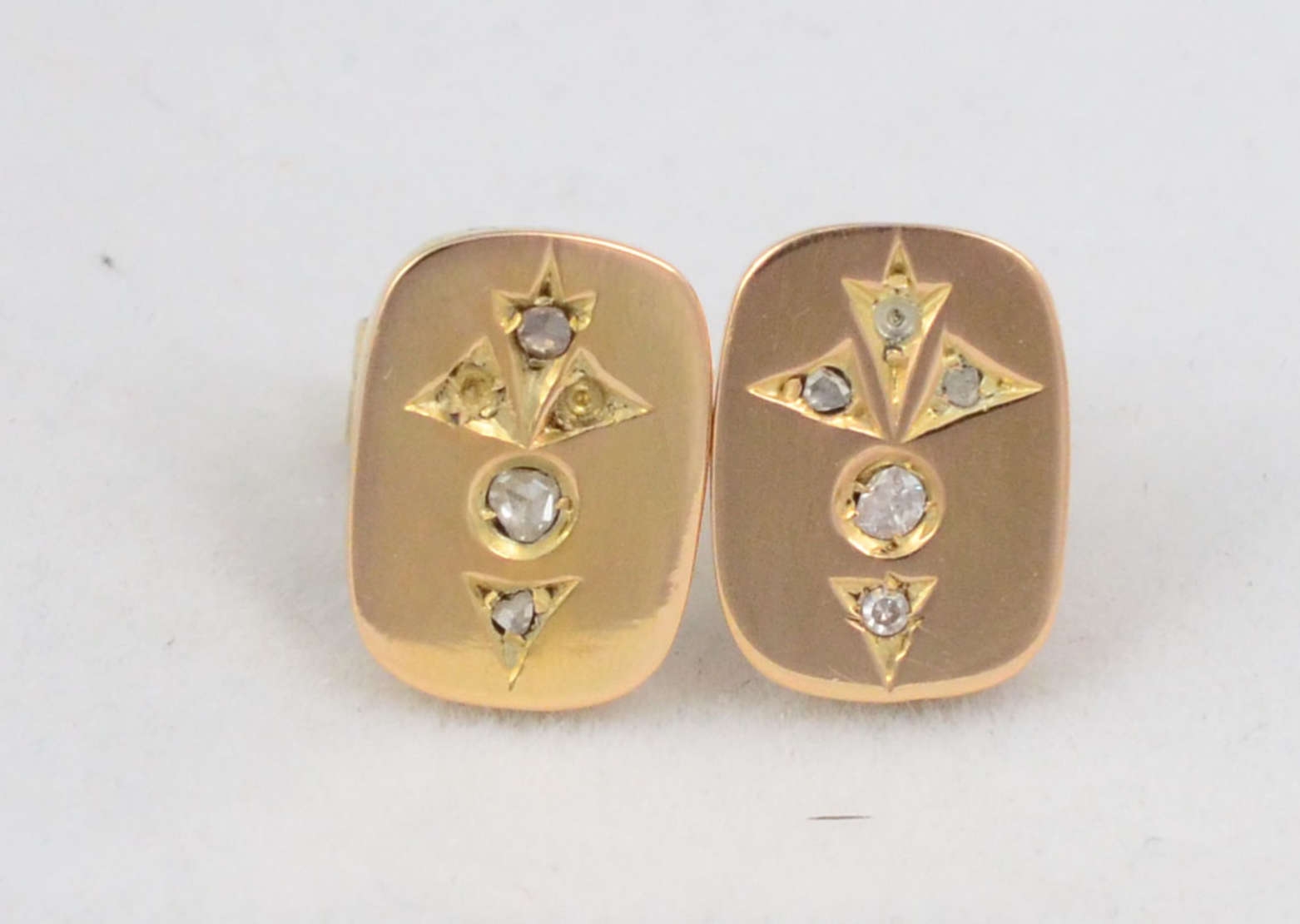 Par de brincos de ouro 18 k com 2 rubilitas e brilhantes , peso total.