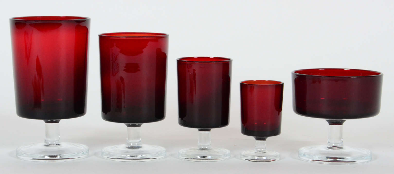 Quatro taças de cristal frances lapidado, doublé rosa, marcadas na base.