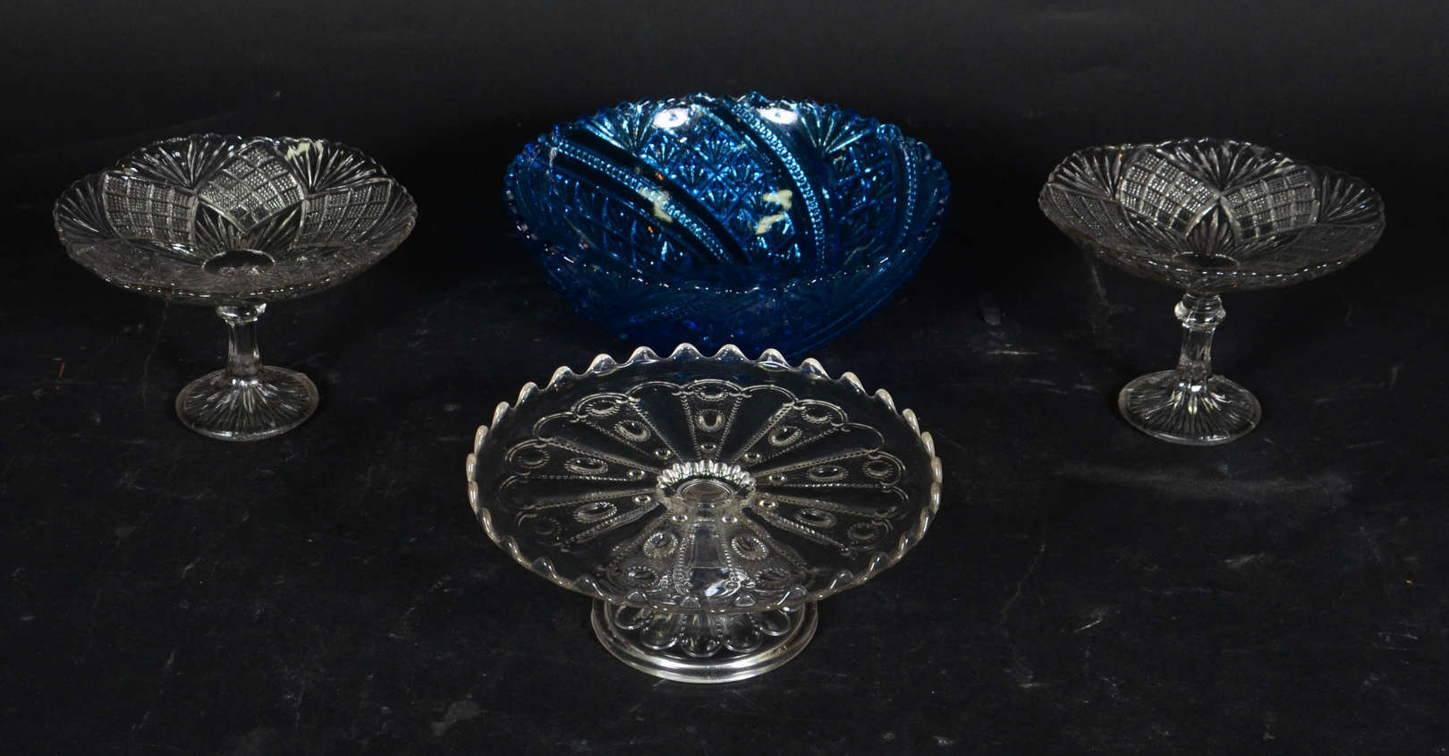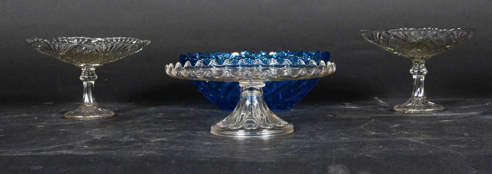 Seis taças para champagne de cristal doublé lapidado na cor azul. (uma com pequeno trincado na borda)