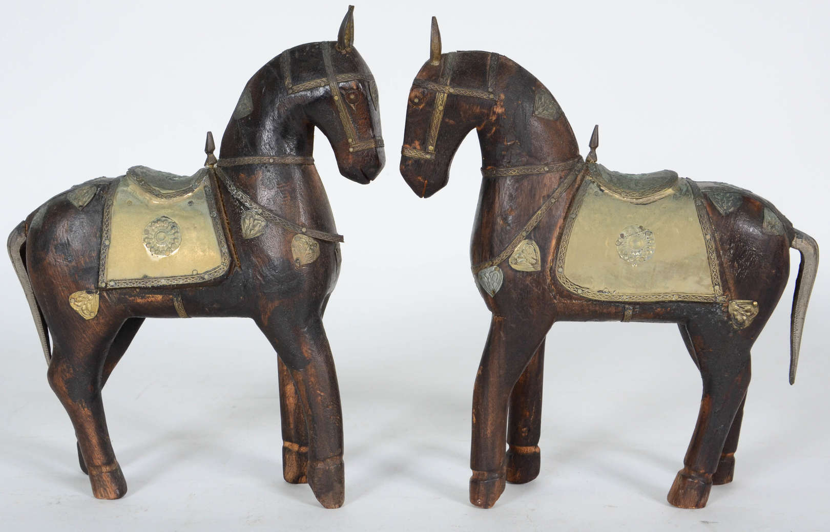 Sete pequenas peças orientais de porcelana, metal e outros materiais.