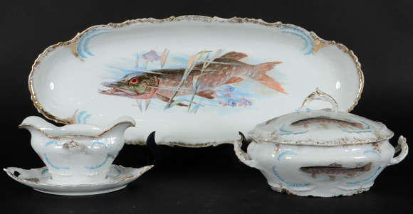 Três peças para servir de porcelana TCHECA, sendo, travessa (64x 25), sopeira e molheira ( 10x10x19)