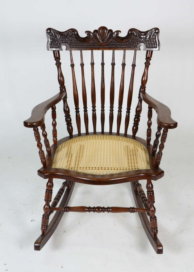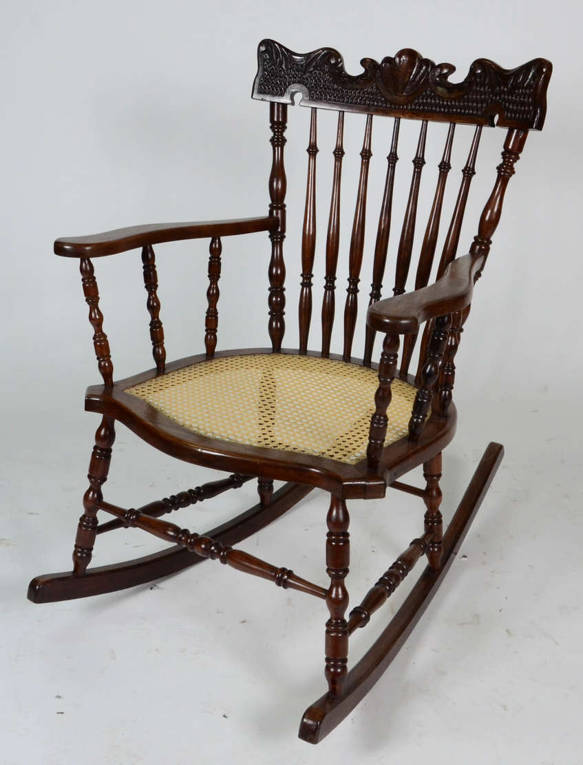 Cadeira de balanço de madeira nobre torneada, forração de palhinha