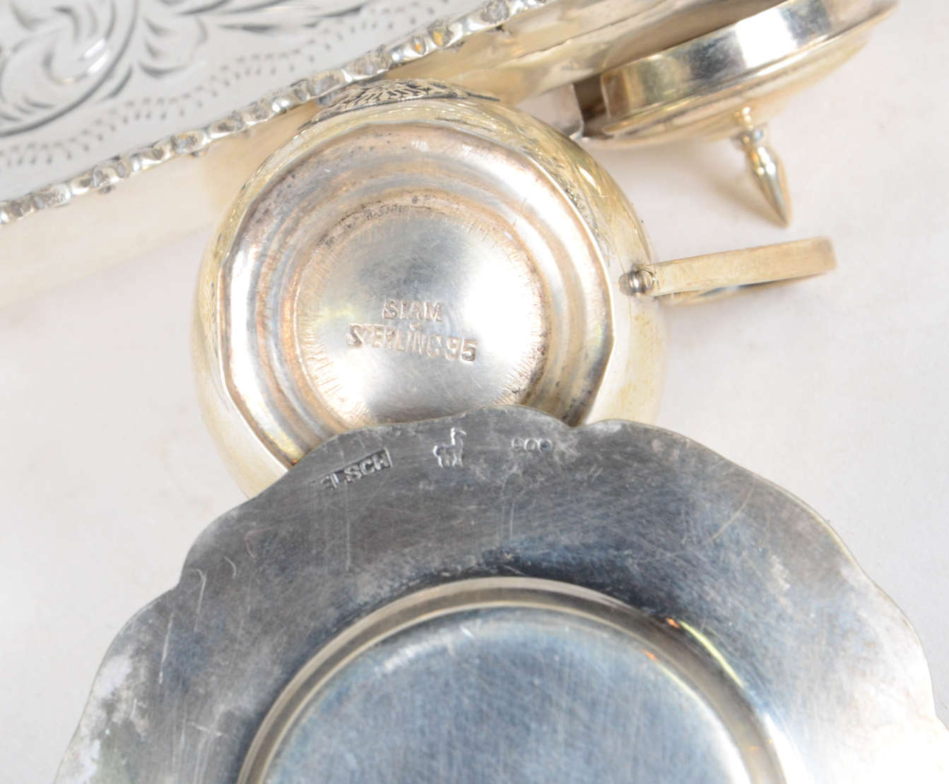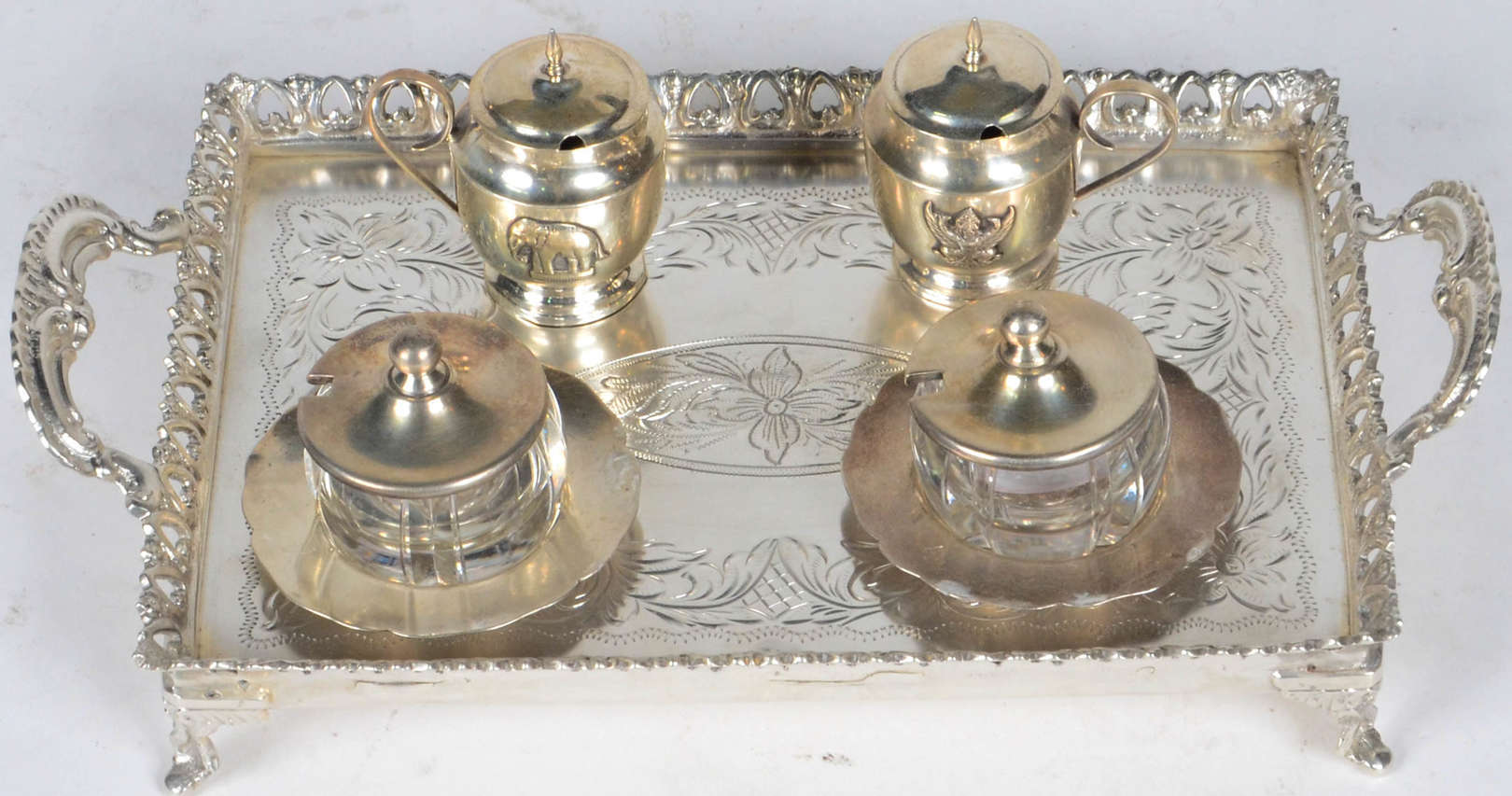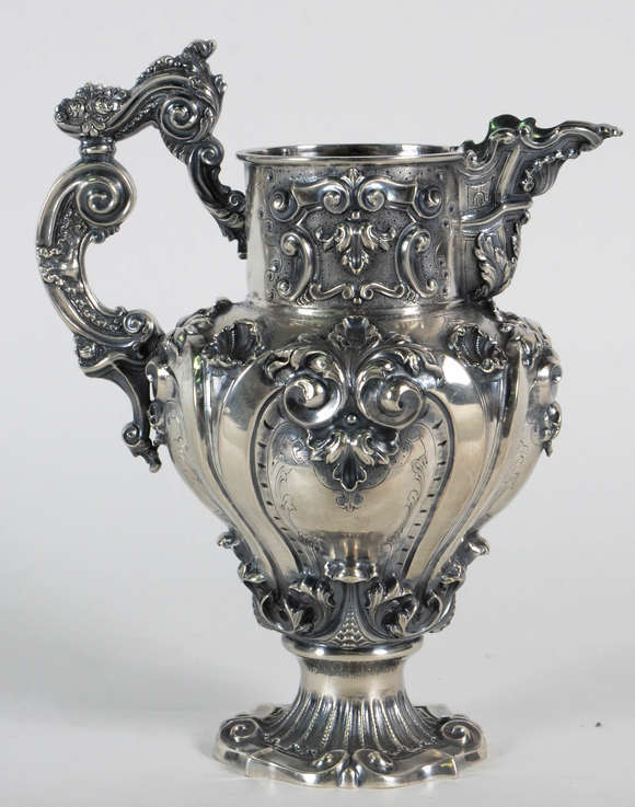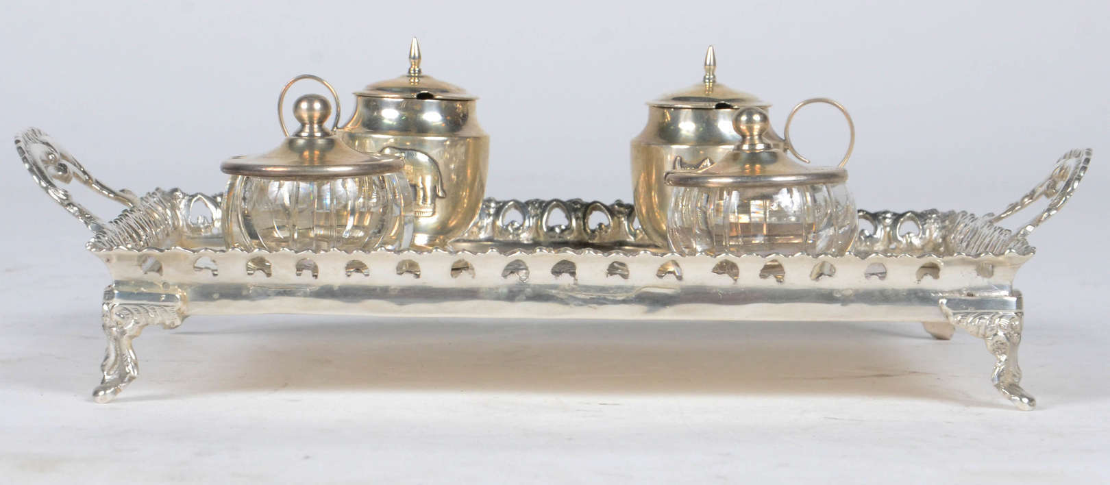 Baixela para chá e café de prata portuguesa contraste Águia, composta de 2 bules, leiteira, açucareiro e bandeja , T...
