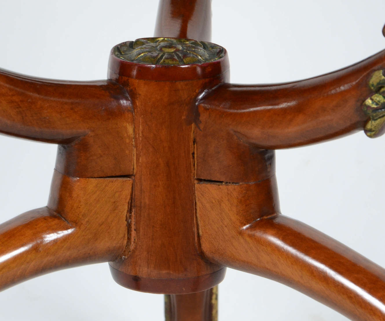 Coluna estilo frances de madeira nobre com figuras estilizadas de águias em metal dourado, dois platôs com tampos de...