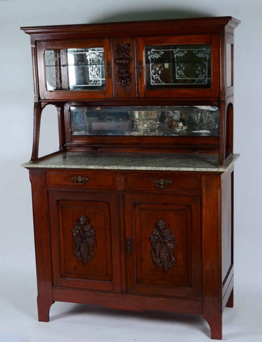 Belissima Mesa de apresentação de madeira nobre com tampo de mármore Carrara, estilo Luis Felipe, pernas recurvas ama...