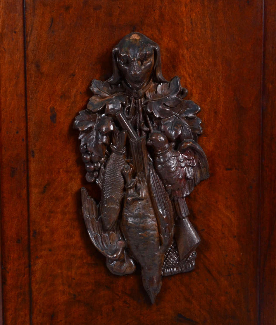 Console de madeira nobre, saia entalhada, quatro pernas altas recurvas.
