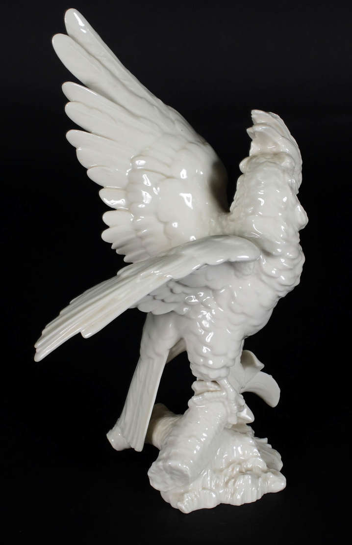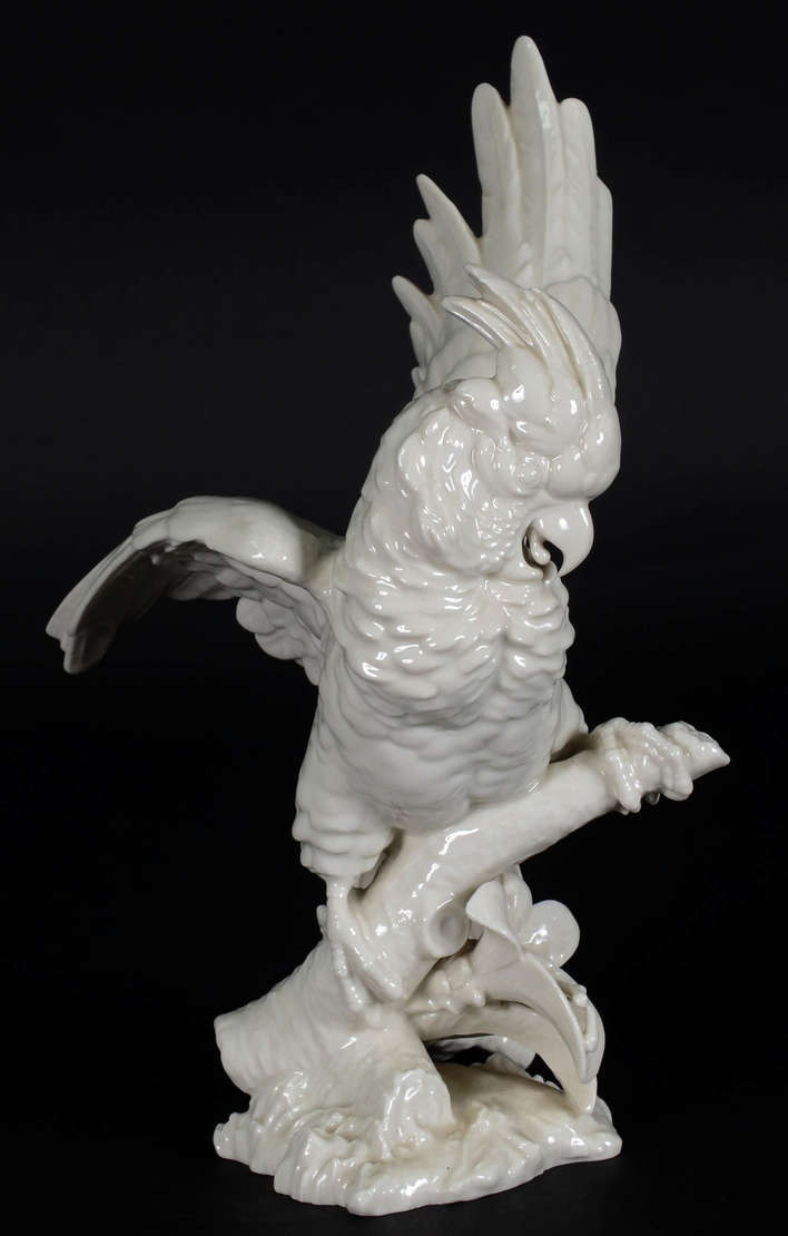 Royal Dux - Estatueta de porcelana tcheca policromada representando papagaio, anos 50