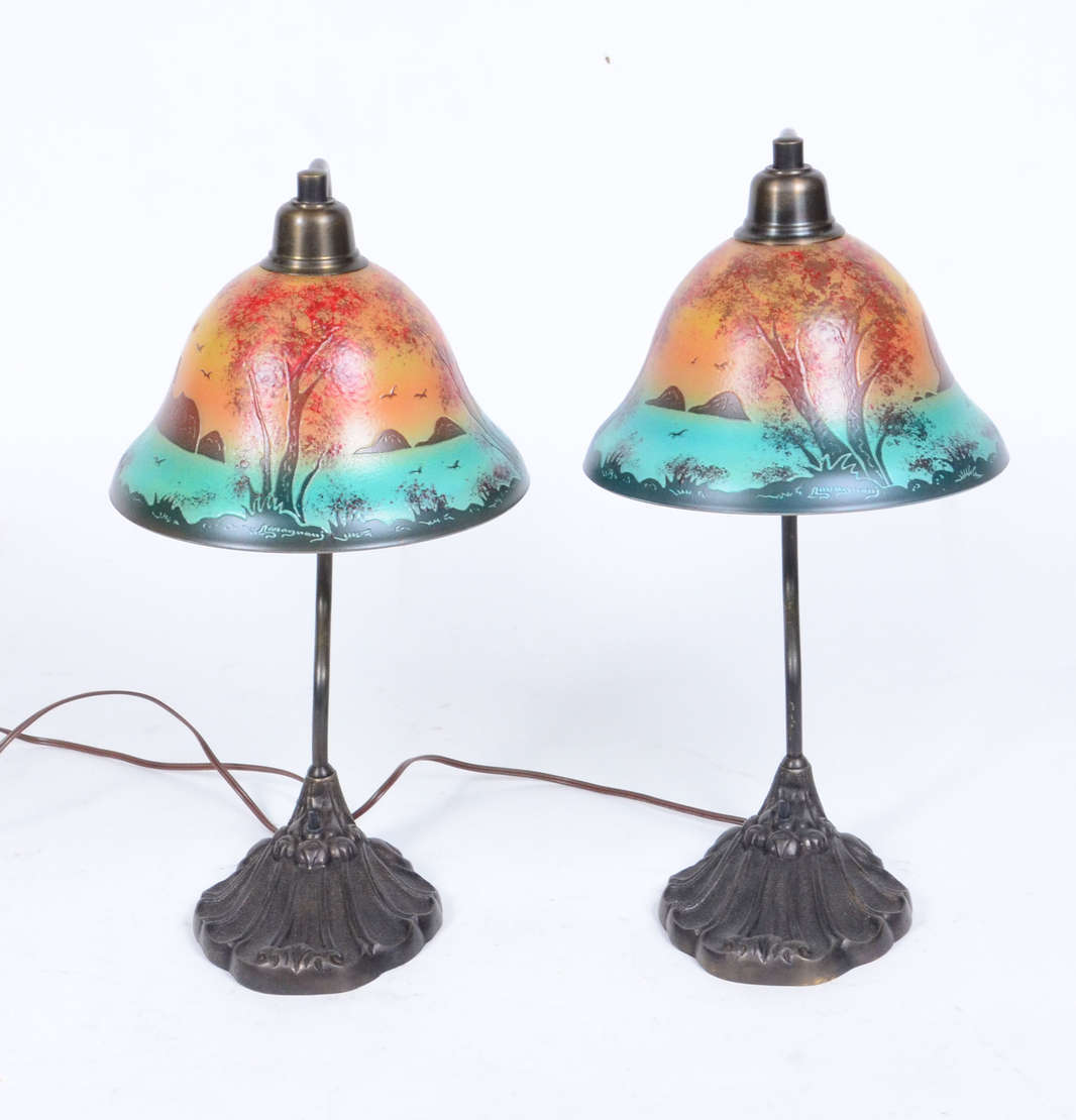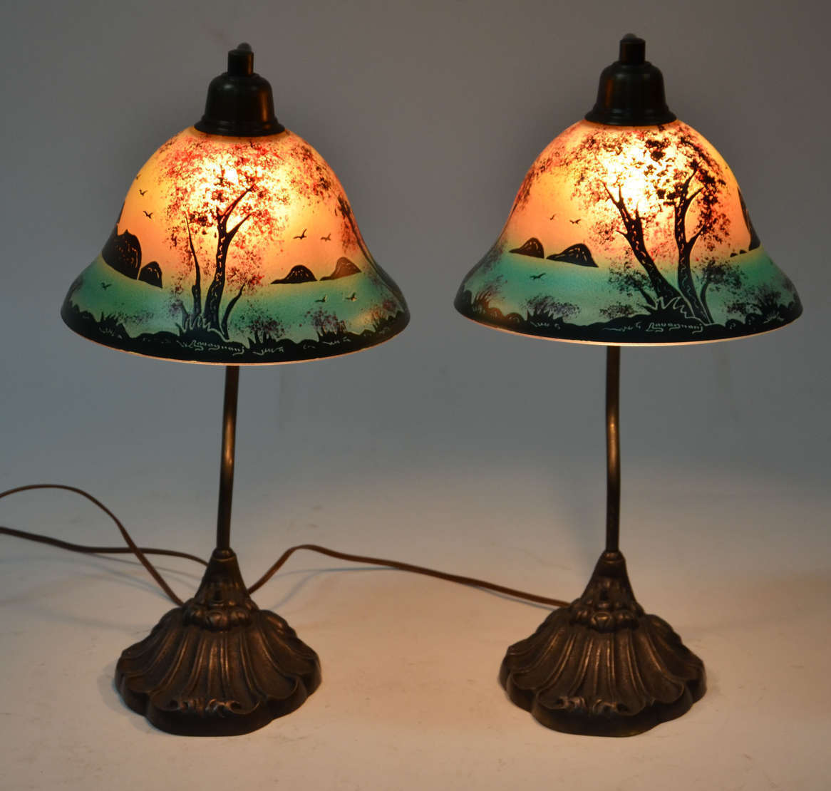 Par de Abatjoures com bases de metal e cúpulas de vidro com paisagens do Rio de Janeiro