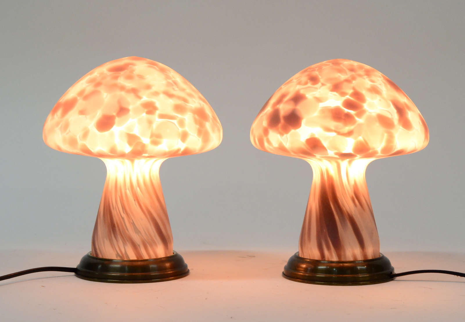 Par de abatjoures de metal, anos 60. Acompanham cupulas na cor bege.