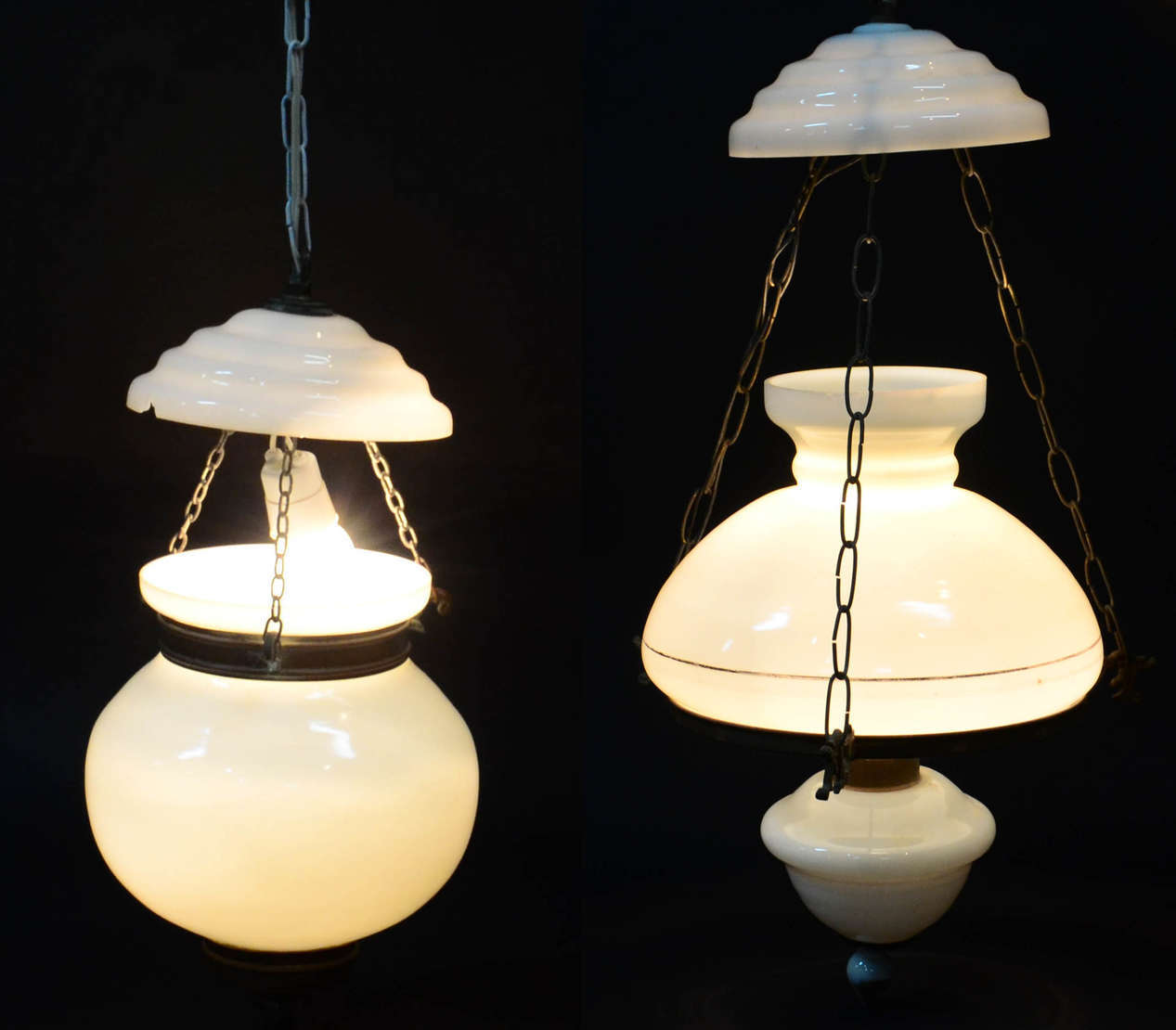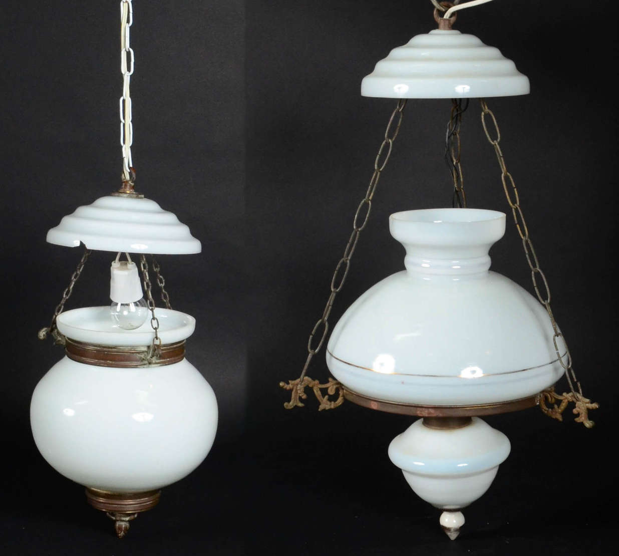 Par de Abatjoures com bases de metal e cúpulas de pasta de vidro, assinados.