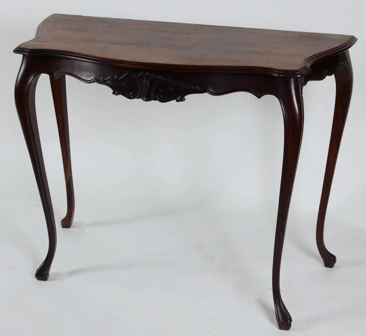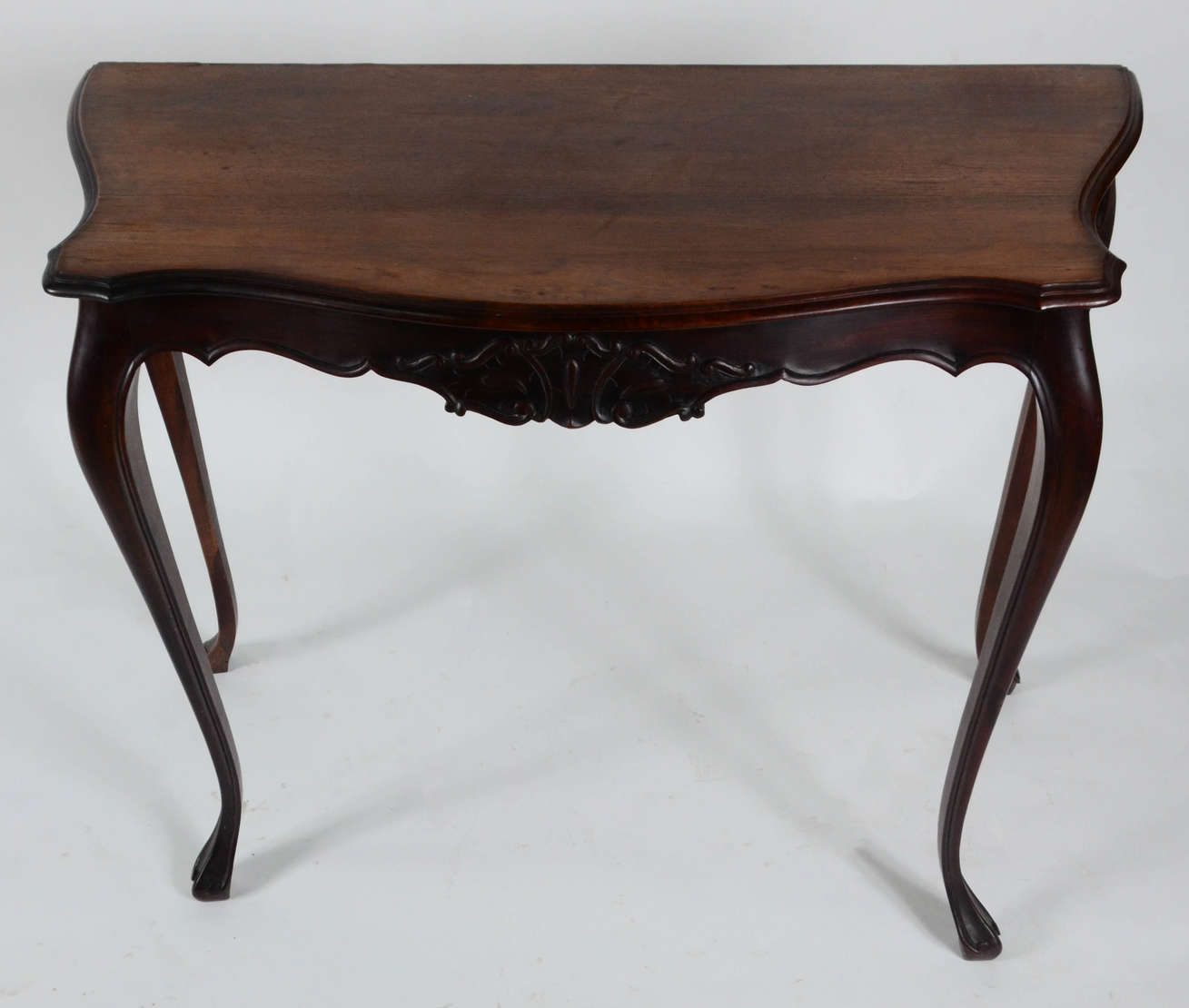 Belissima Mesa de apresentação de madeira nobre com tampo de mármore Carrara, estilo Luis Felipe, pernas recurvas ama...