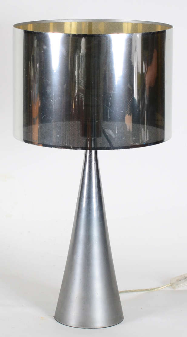 Abatjour de metal dourado com cúpula opalinada branca.