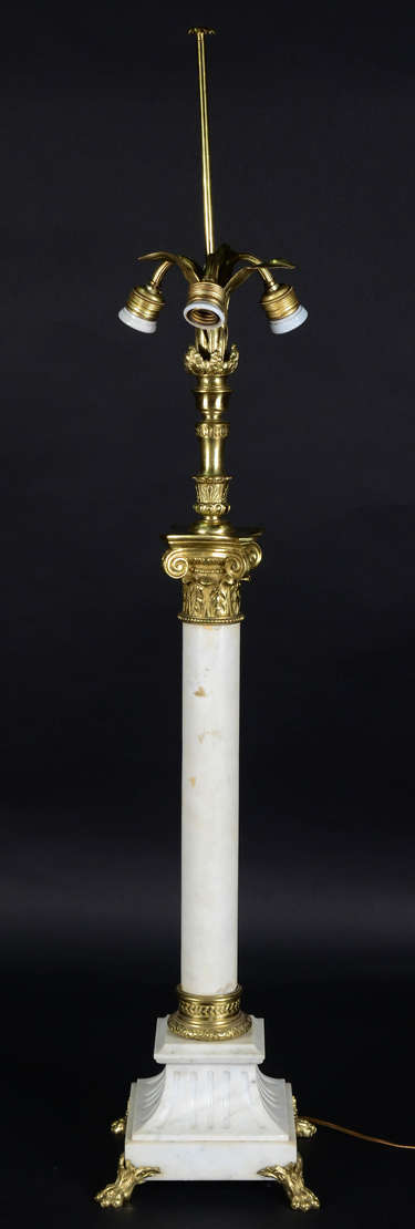 Abatjour de metal dourado com cúpula opalinada branca.