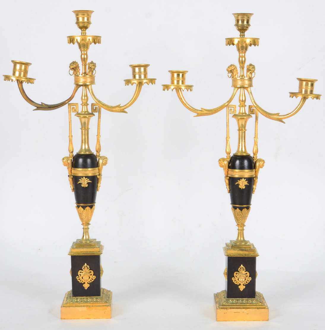 Par de candelabros Franceses de bronze dourado para 7 velas cada , rico trabalho com folhagens e acantos em relevo.