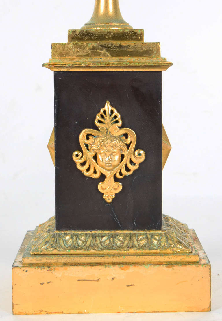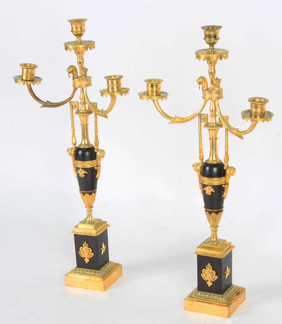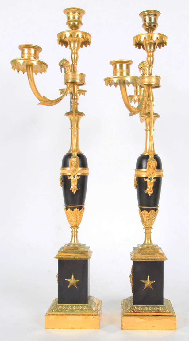 Par de imponentes candelabros de bronze dourado a ouro , para 6 velas cada , bases com figuras de cupidos segurando...