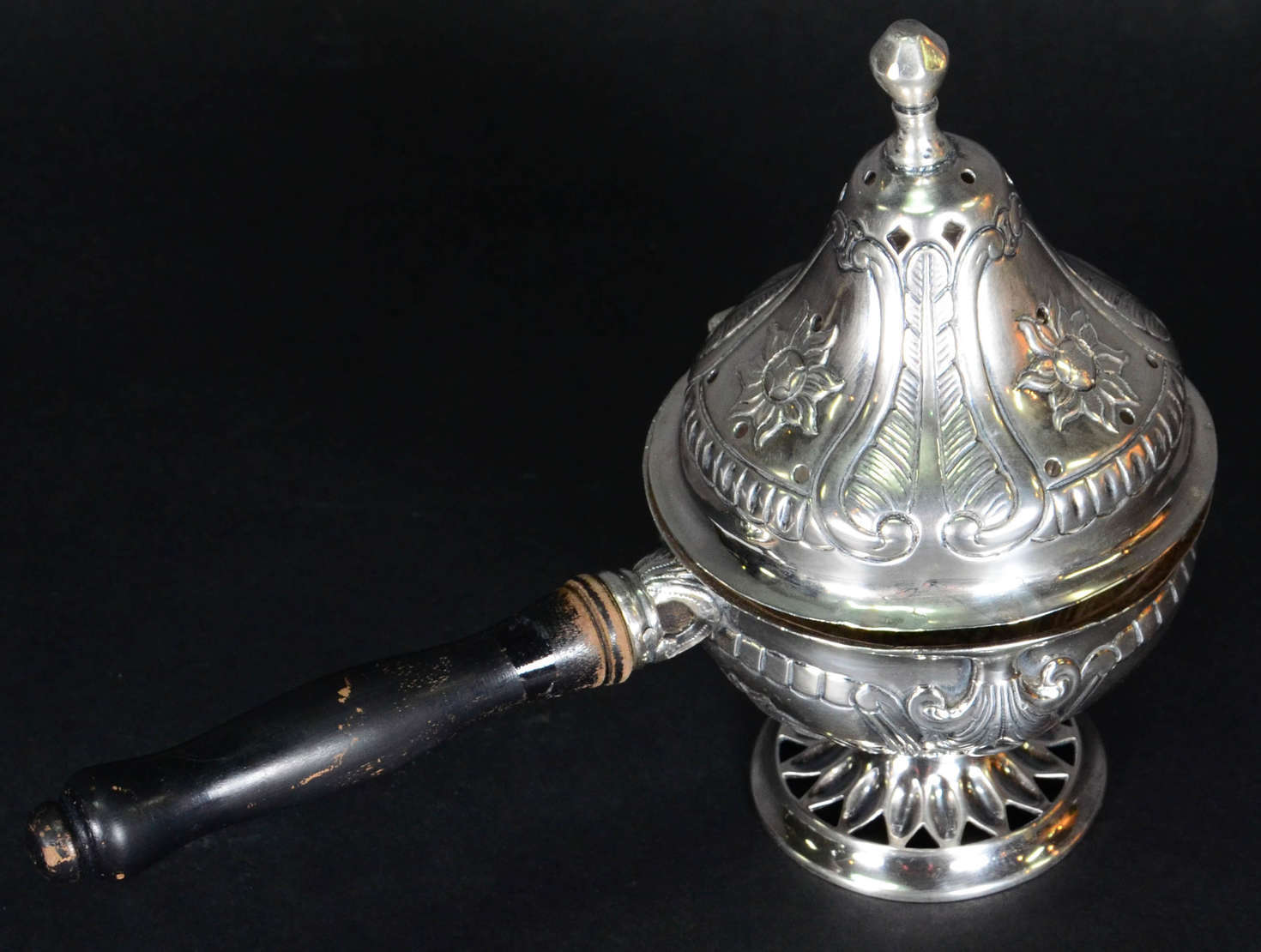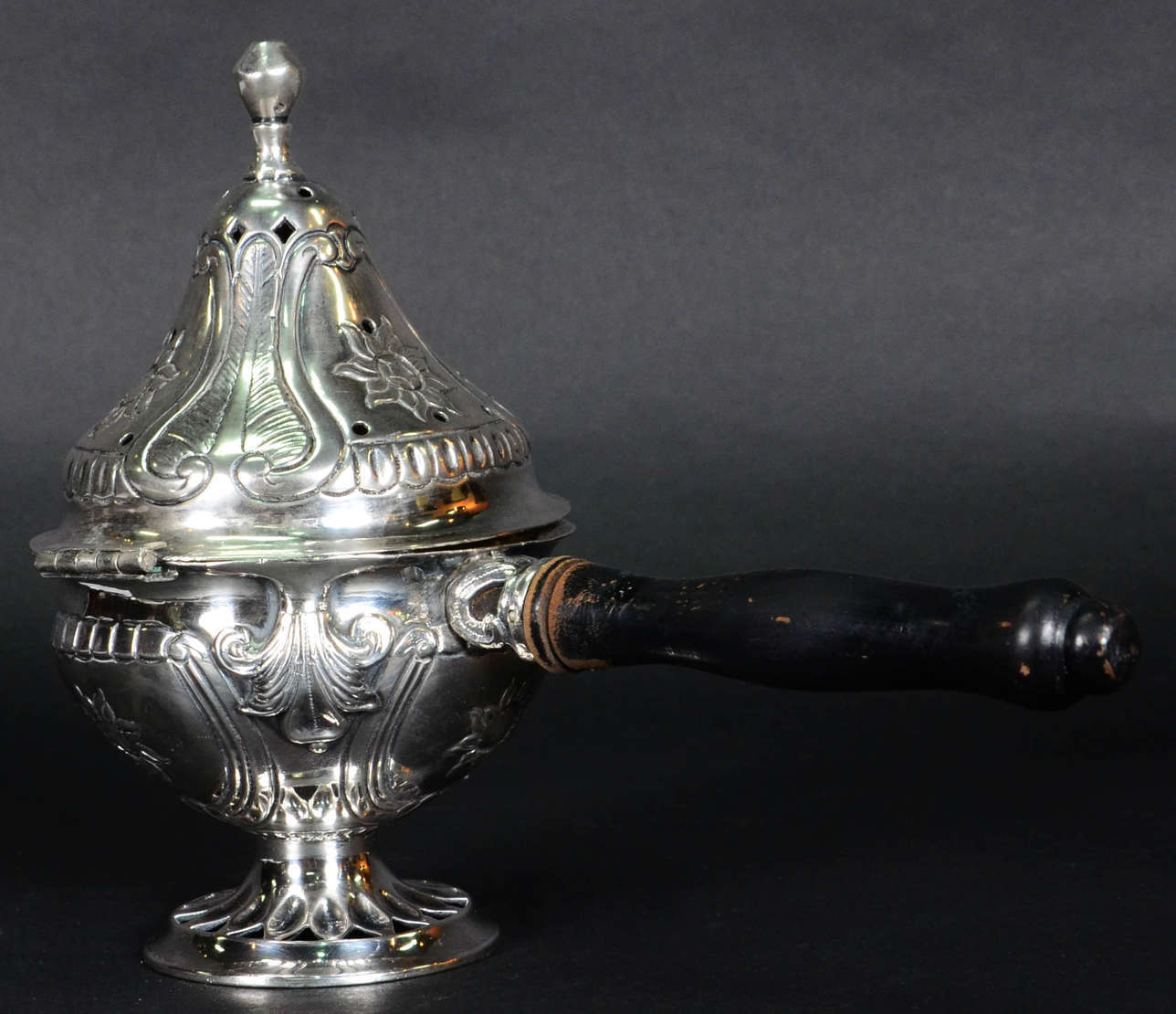 Incensorio de prata (sem contraste), alca de madeira. Sec.XIX.