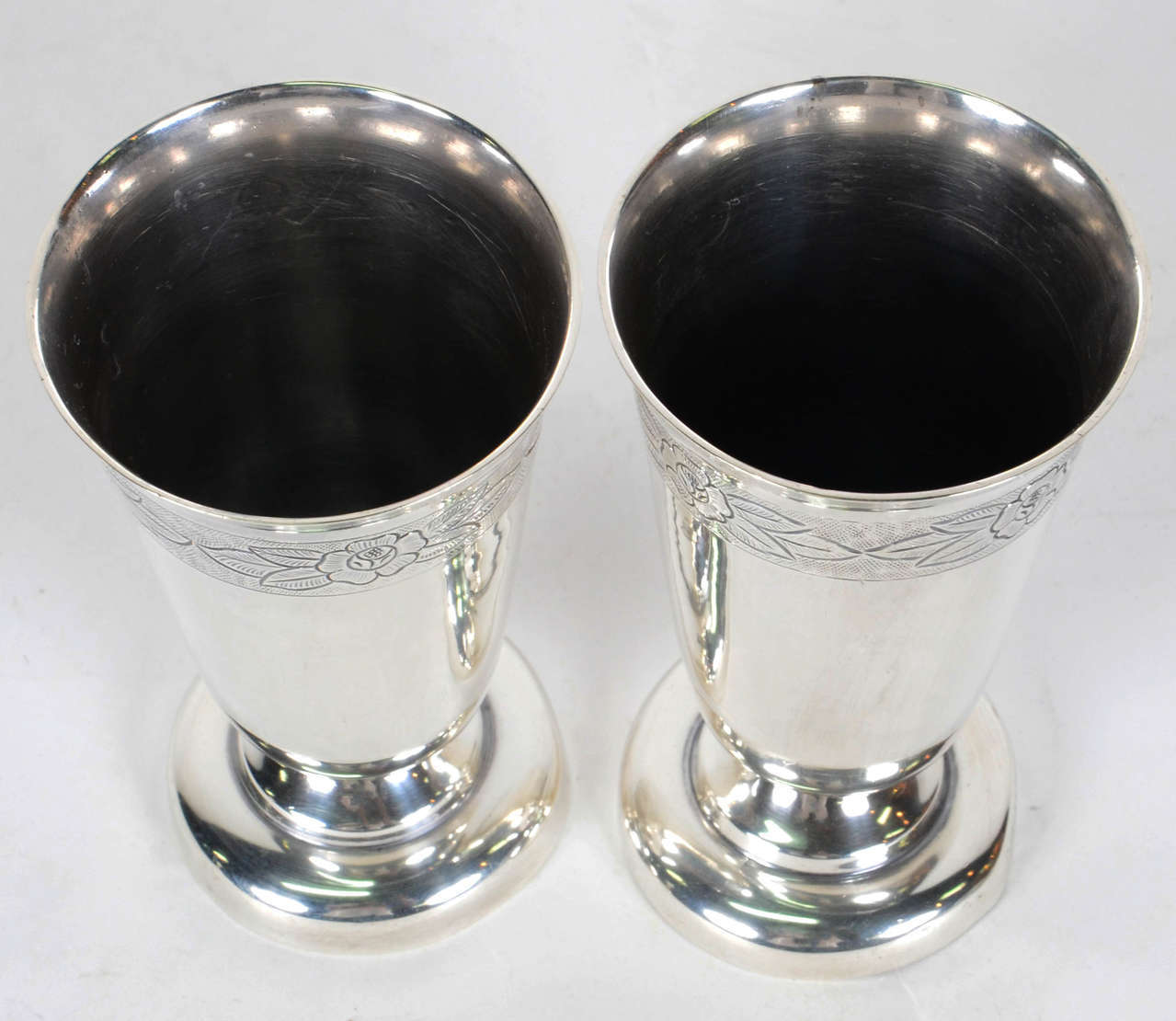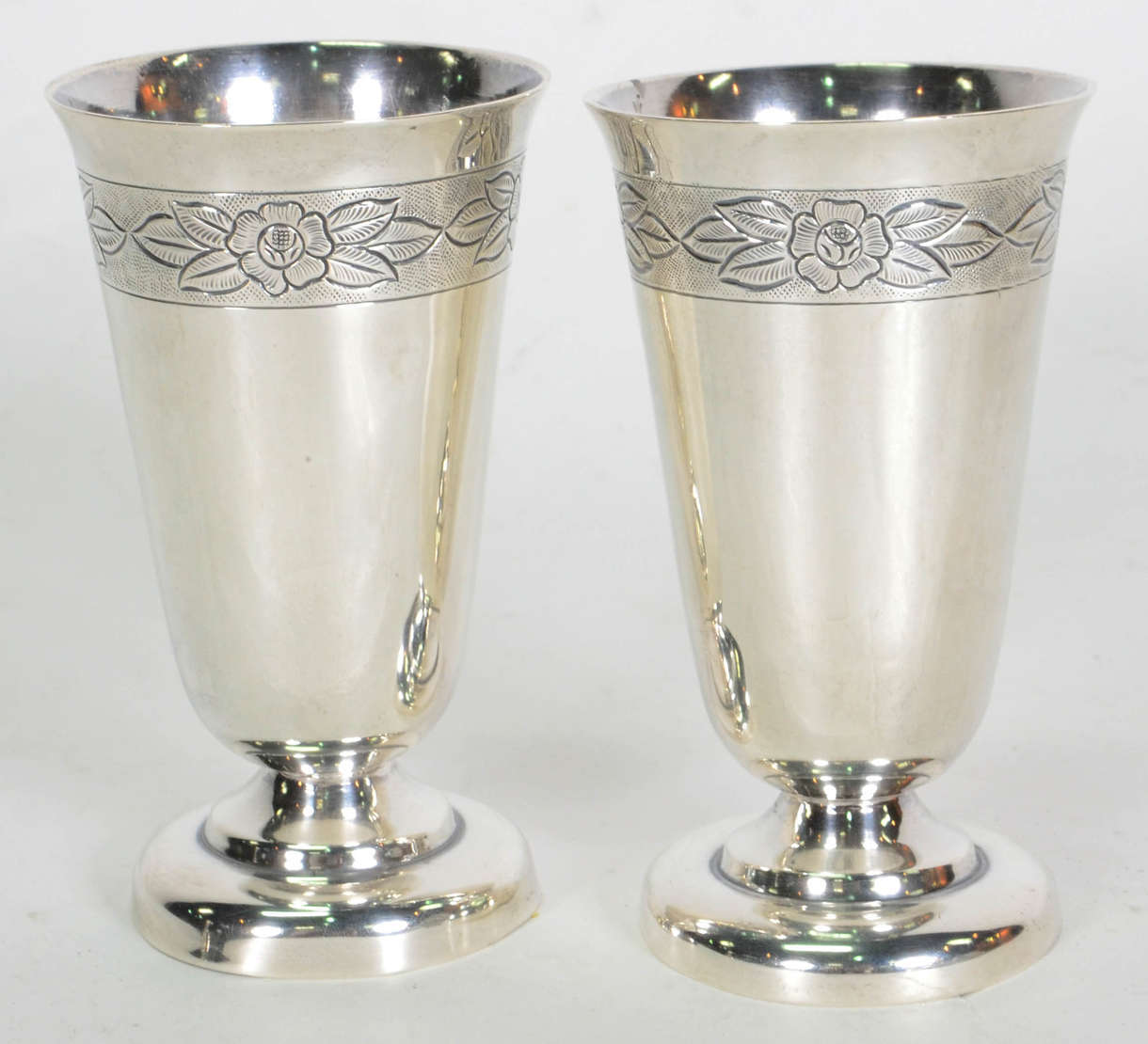 Par de castiçais de prata russa ricamente trabalhados com guirlandas florais, segunda metade do sec.XIX, .
