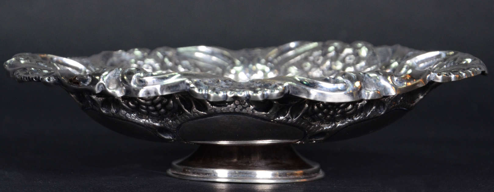 Salva de prata portuguesa contraste Águia , Porto 1886, borda recortada com concheados em relevo.