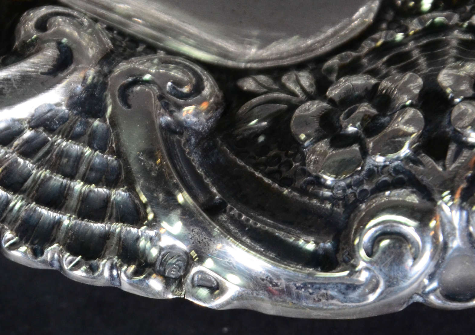 Tabuleiro de prata portuguesa contraste Águia 1º título , 1886 , galeria vazada , fundo cinzelado em rocaille.