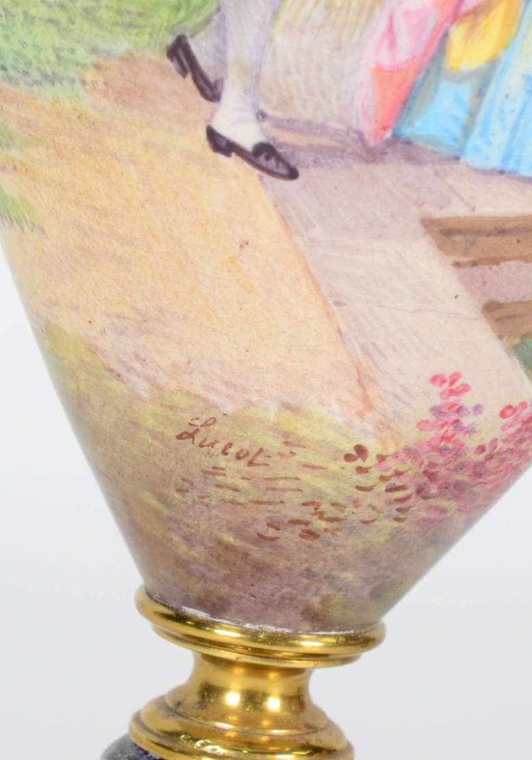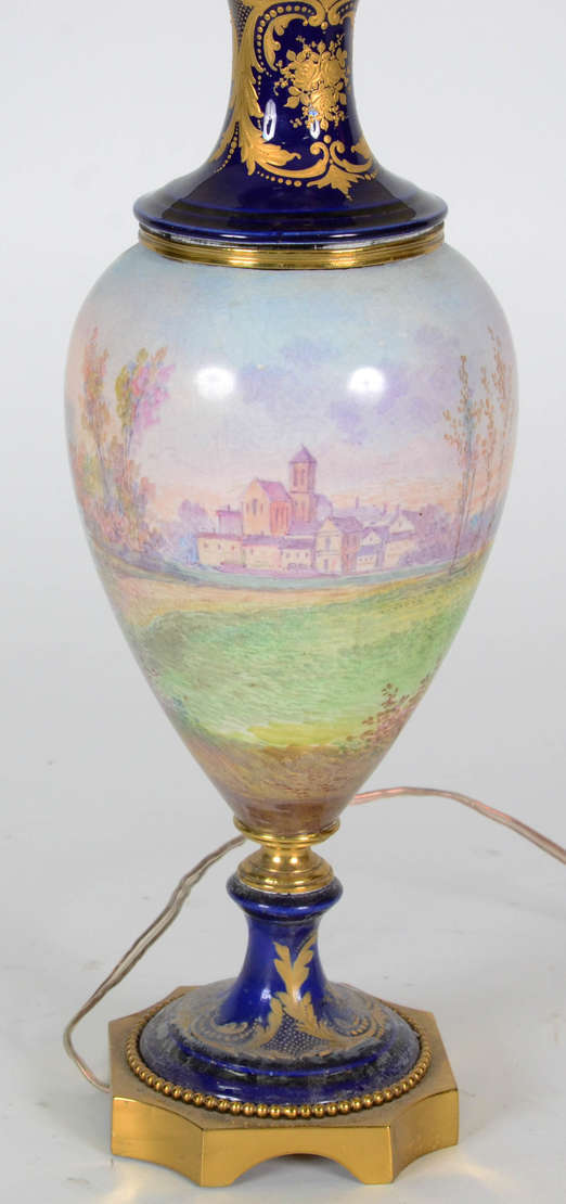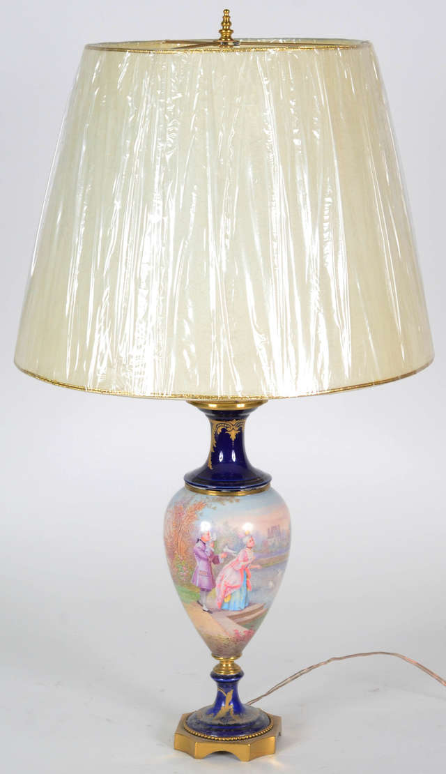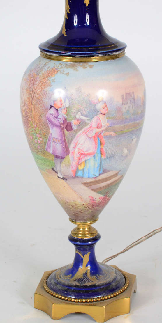 Abatjor de porcelana Francesa de Sévres em tons de azul cobalto e ouro com pintura galante , Vênus e cupido .( com ...