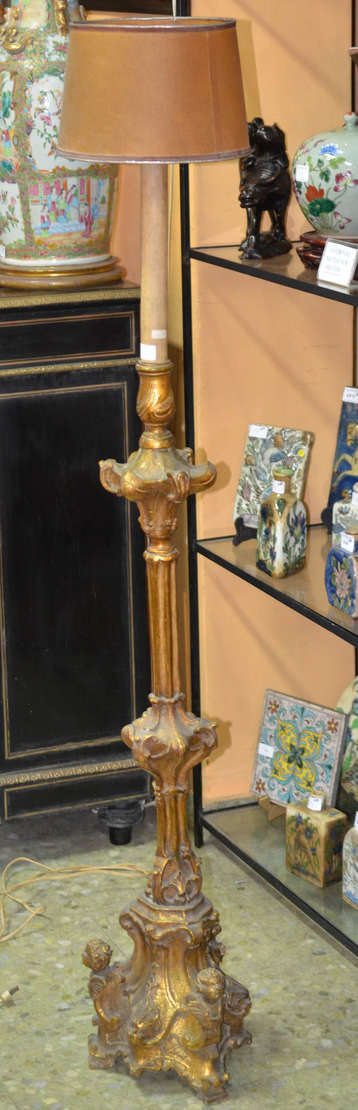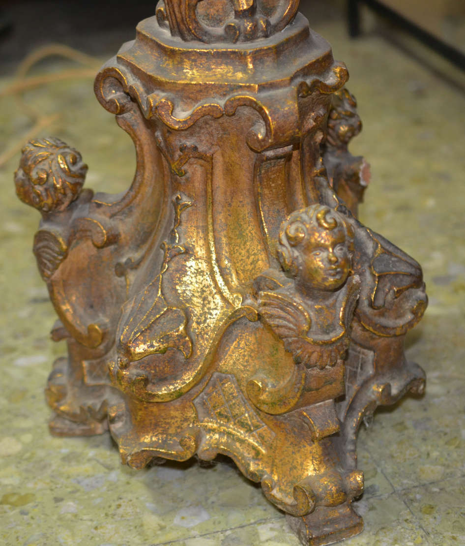 Par de imponentes candelabros de bronze dourado a ouro , para 6 velas cada , bases com figuras de cupidos segurando...