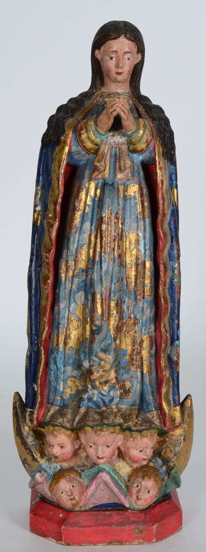 Pequeno oratório em bronze esmaltado com Nossa Senhora em madrepérola