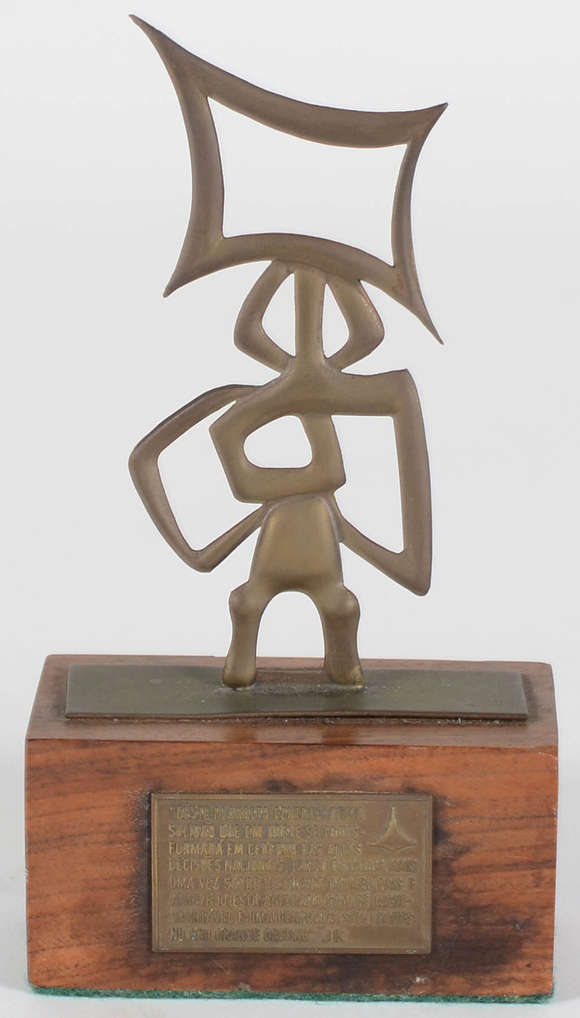 Edição em múltiplo da escultura em metal e base de madeira , monumento O RITO DO RITMO que foi criada para inaugura...