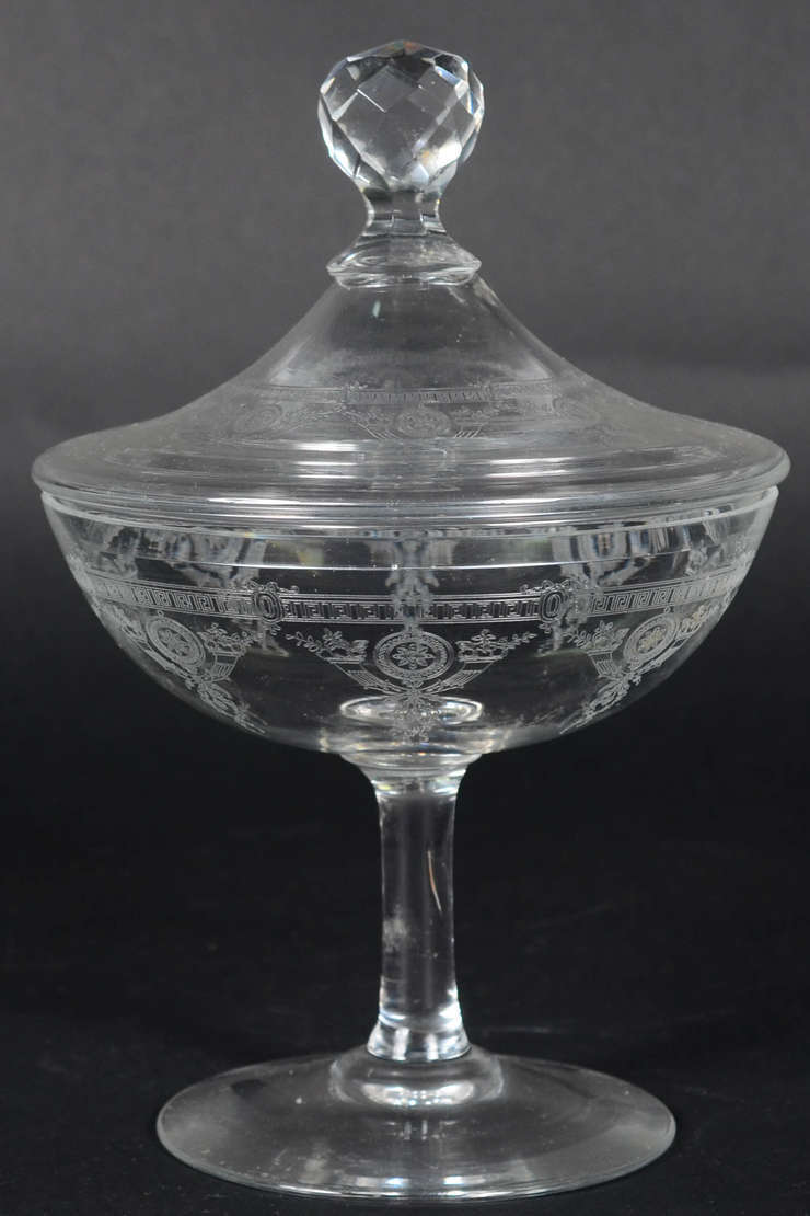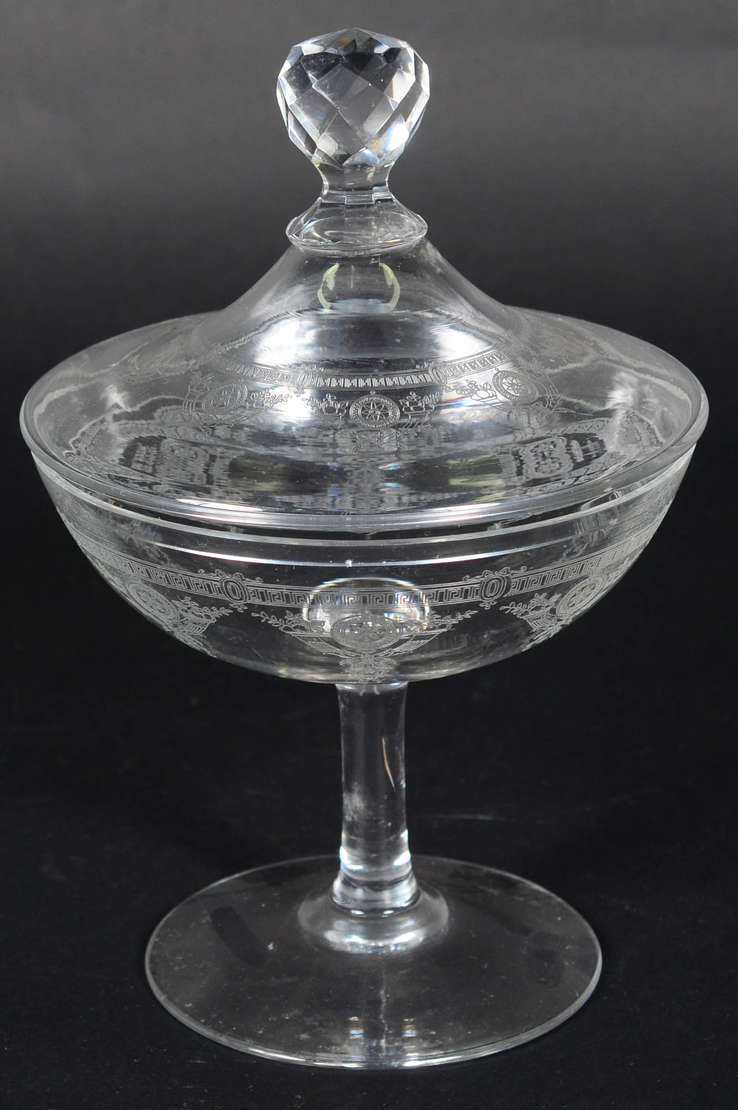 Par de antigas compoteiras de cristal europeu monogramado, com presentoires ( pequenos lascados no presentoir)