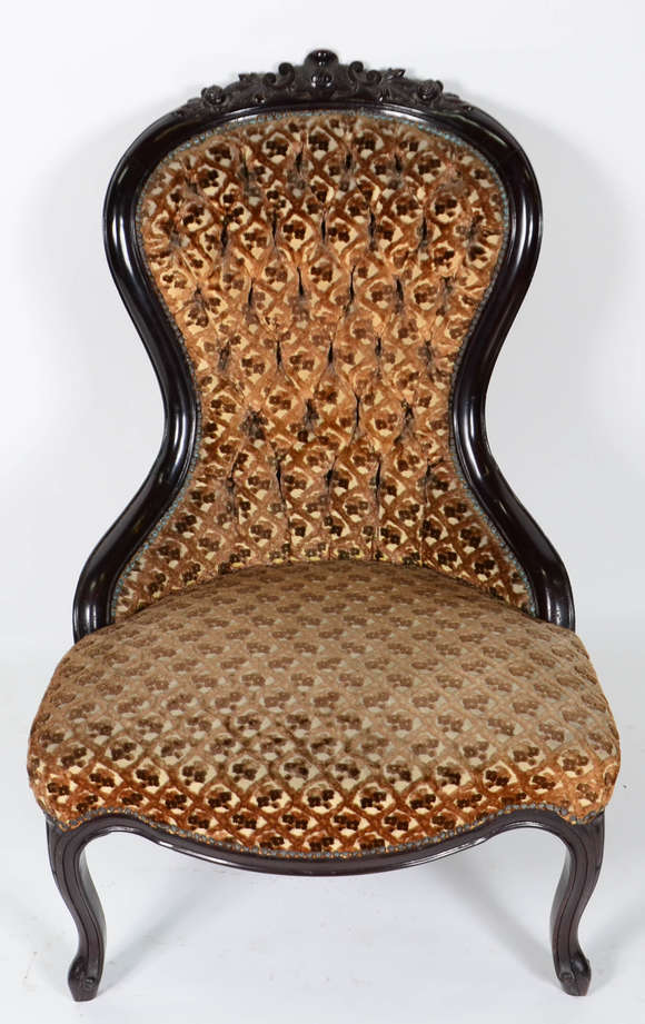 Cadeira de madeira nobre estilo ingles estofada com veludo brocado.