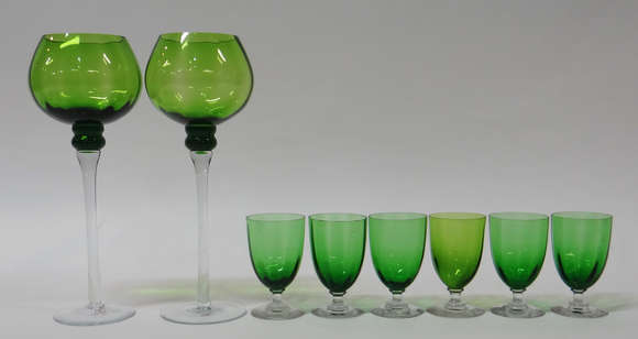 Doze cálices de pé alto para vinho com bordas coloridas