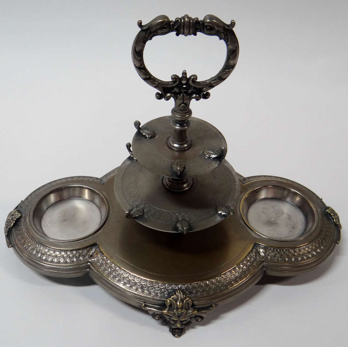 Compoteira com presentoir em cristal europeu lavrado com guirlandas ( pé com anel de metal )