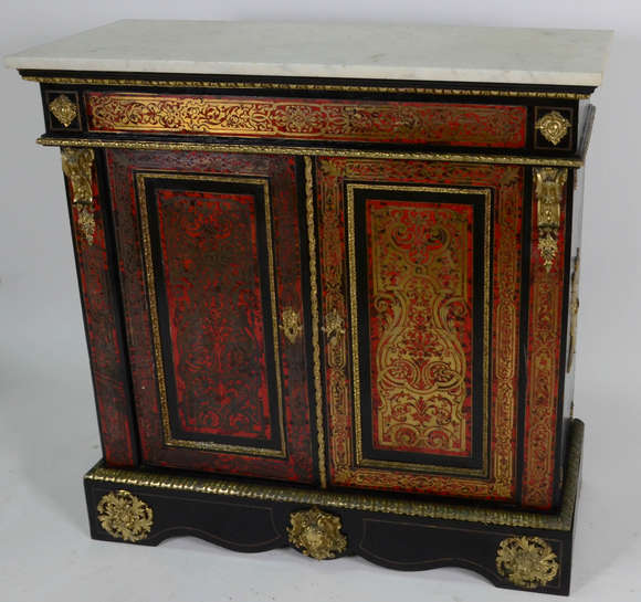 Dunquerque de Boulle com 2 portas , prateleira interna , tampo de mármore, incrustações em metal dourado e tartaruga ...
