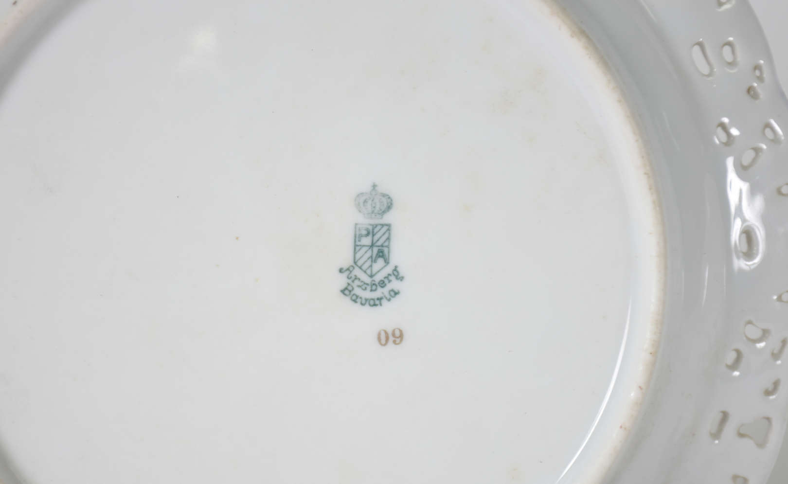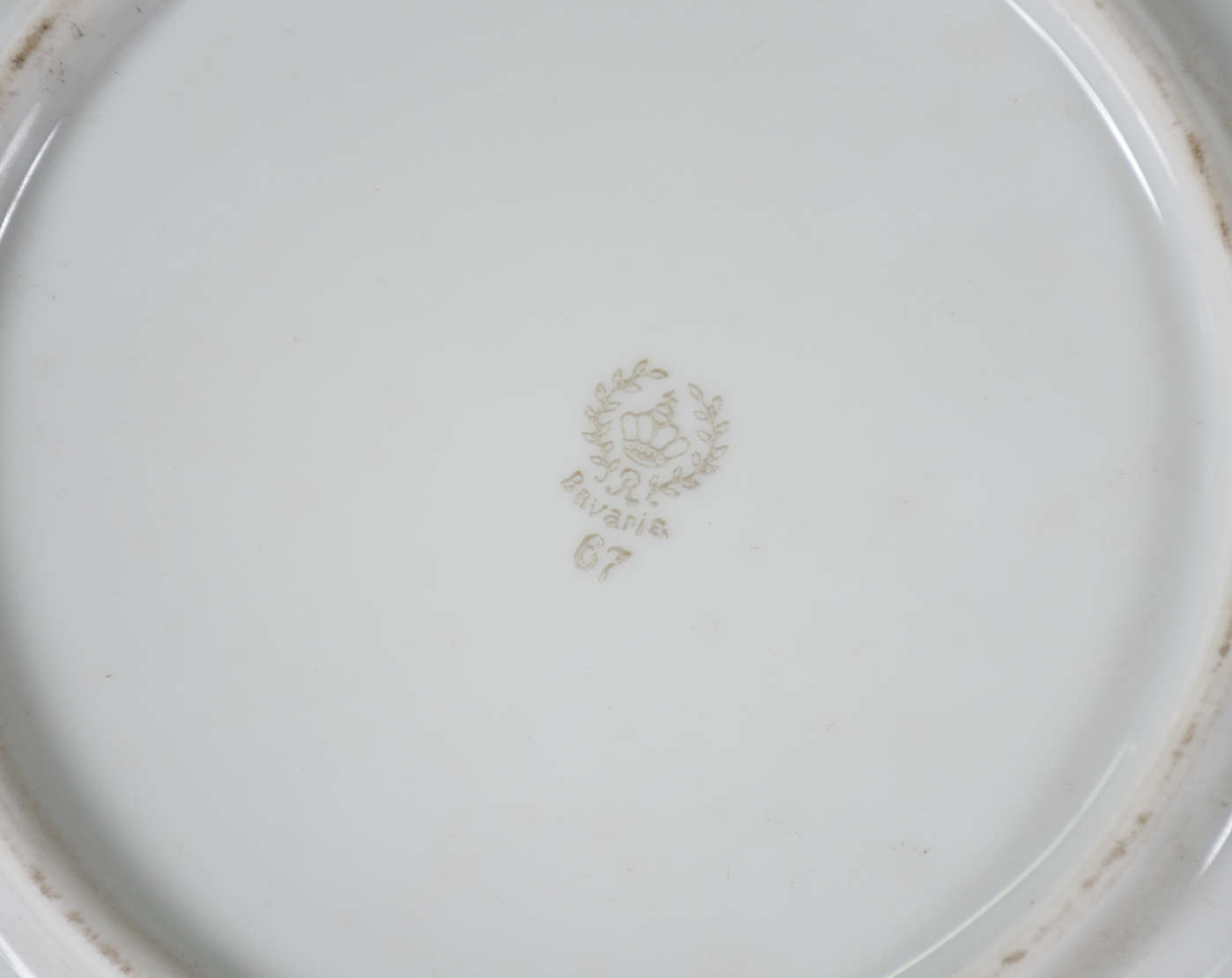 Aparelho de porcelana francesa J.Klotz, monogramado , borda com friso rosa e fios dourados, composto de 11 pratos ra...
