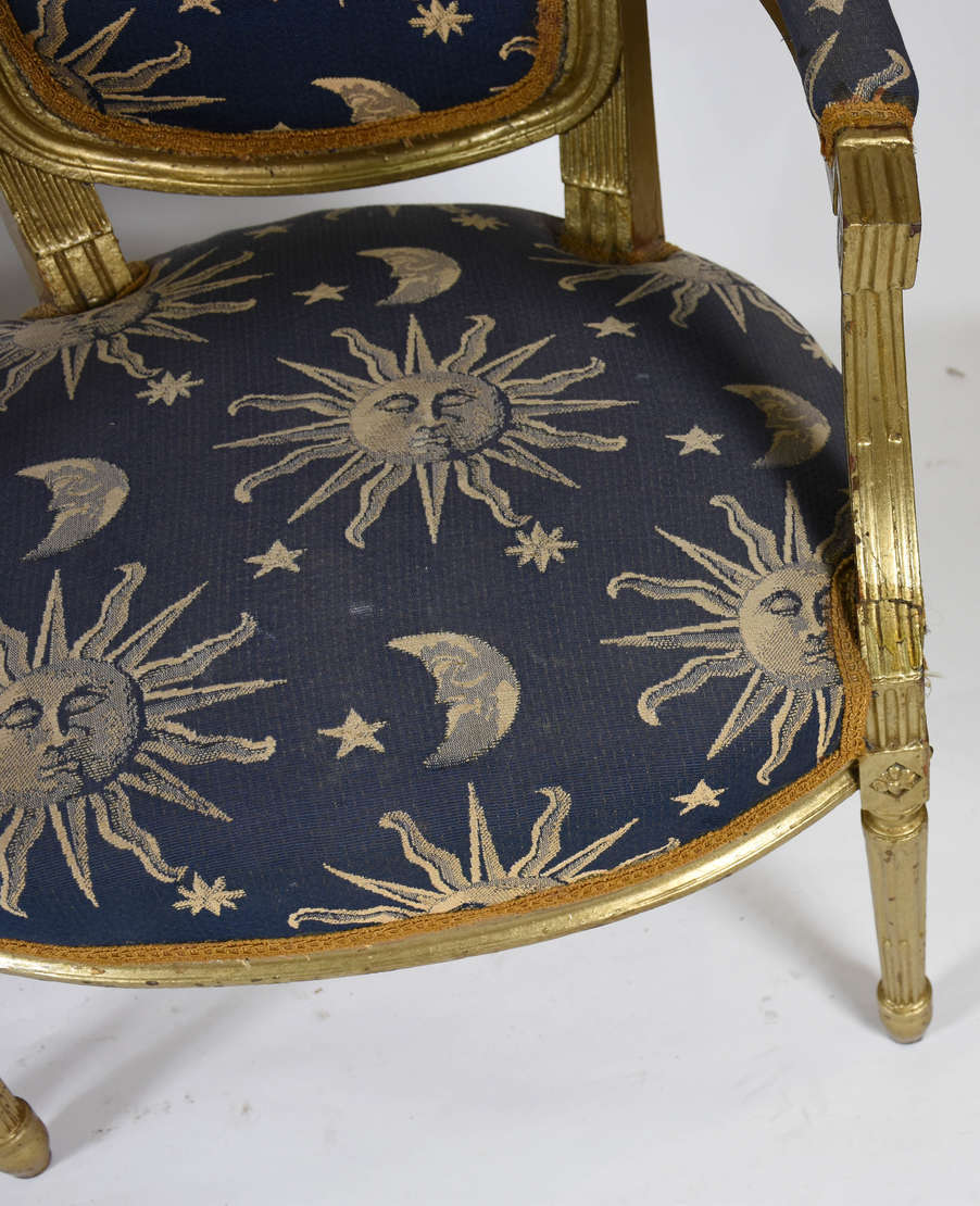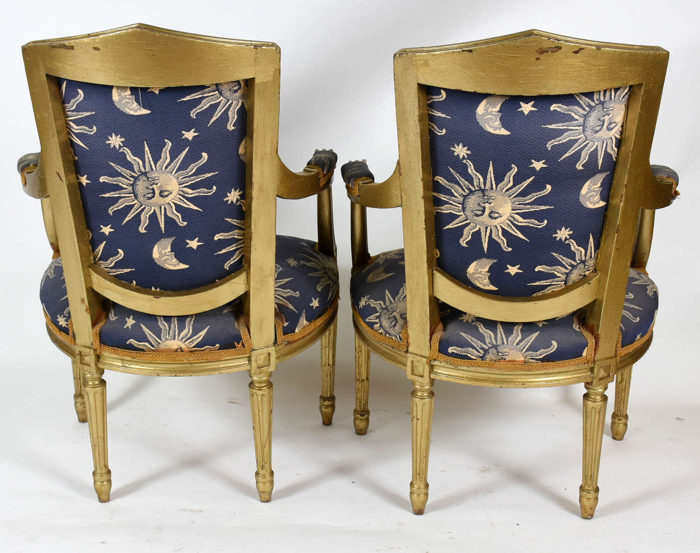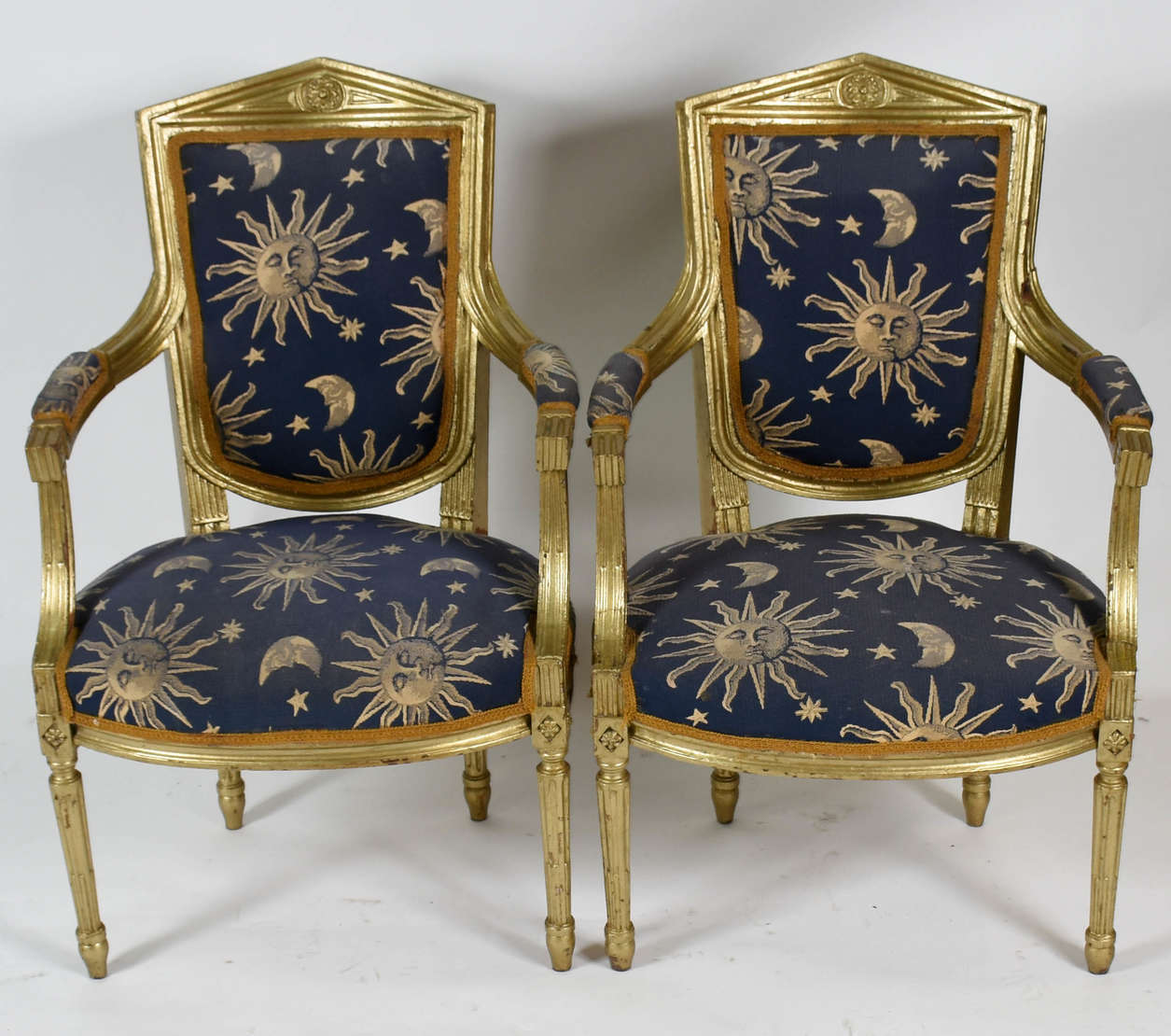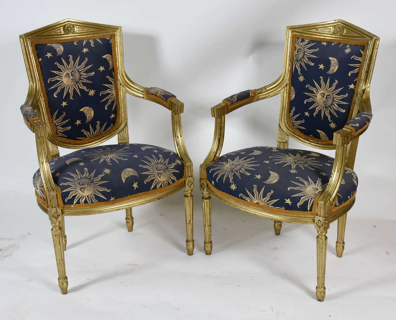 Par de delicadas cadeiras de madeira nobre, assentos e encosto estofado e forrado com tecido azul