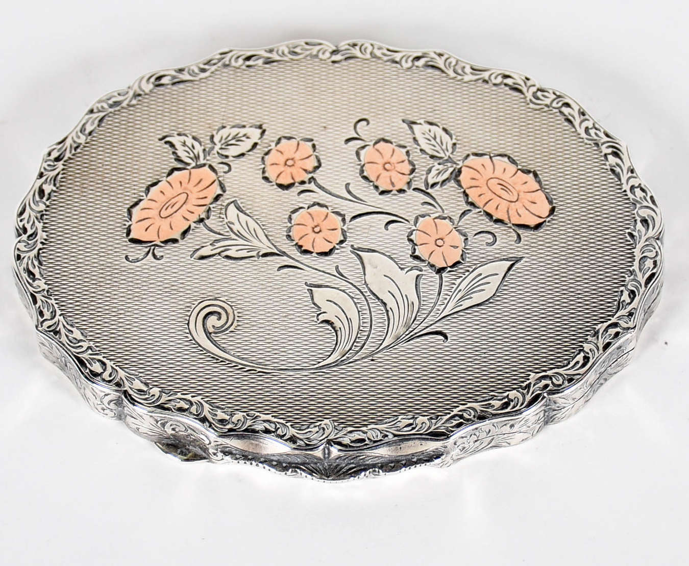 Quatro pratos diversos de porcelana da Bavaria , bordas com vazados, decorados com figuras, flores e frutos em polic...