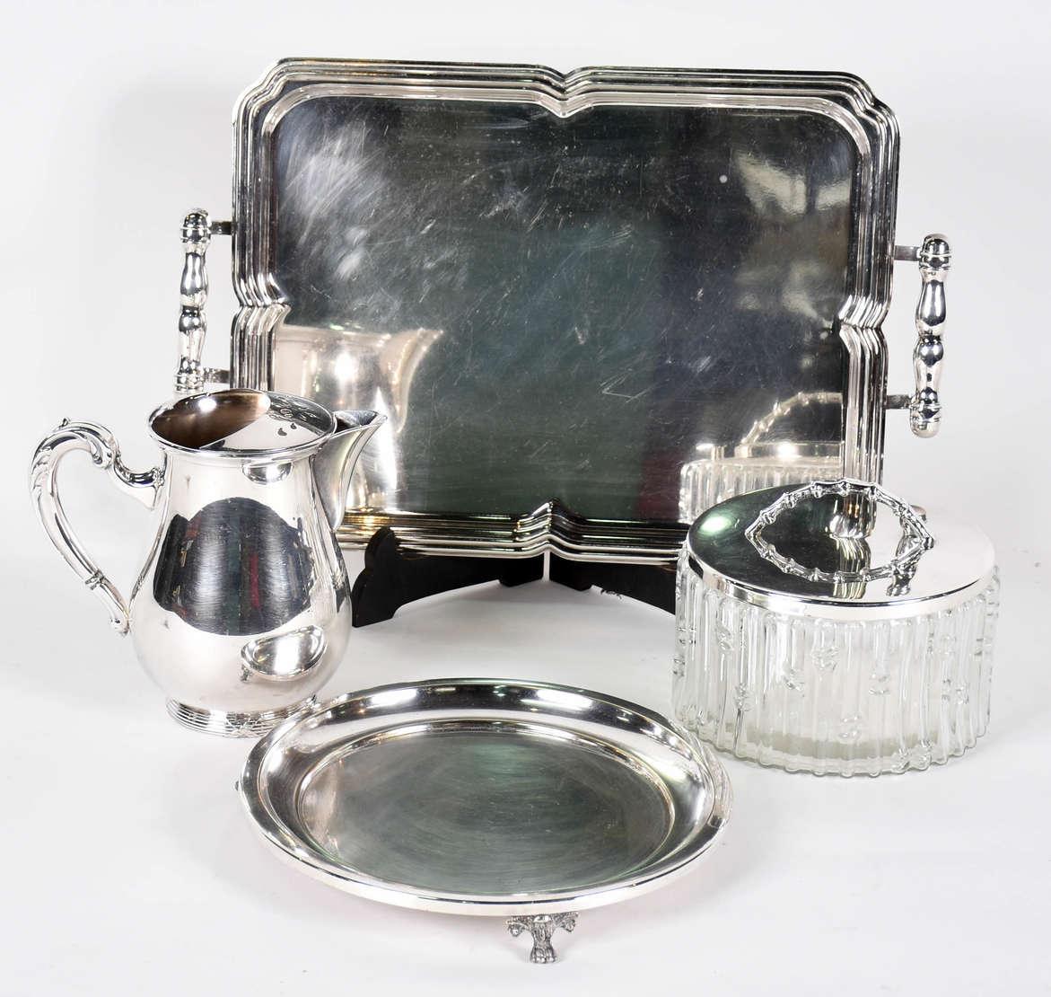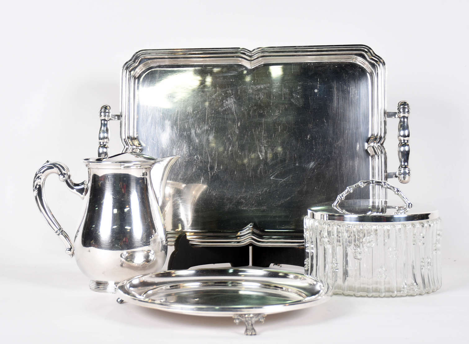 Diversas peças de metal prateado, sendo , dois porta pirex, 2 rechauds (um faltando fogareiro)