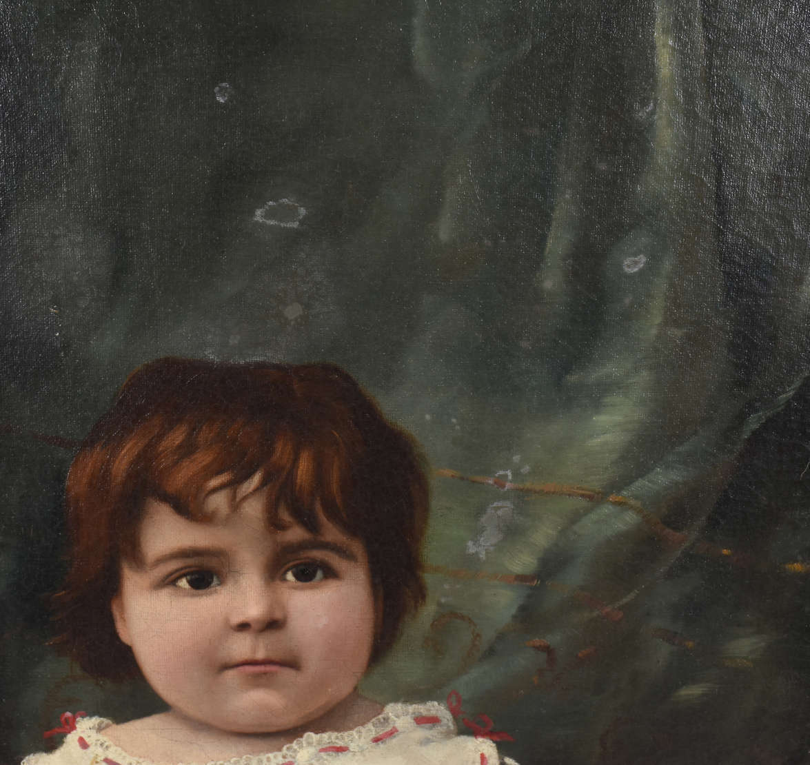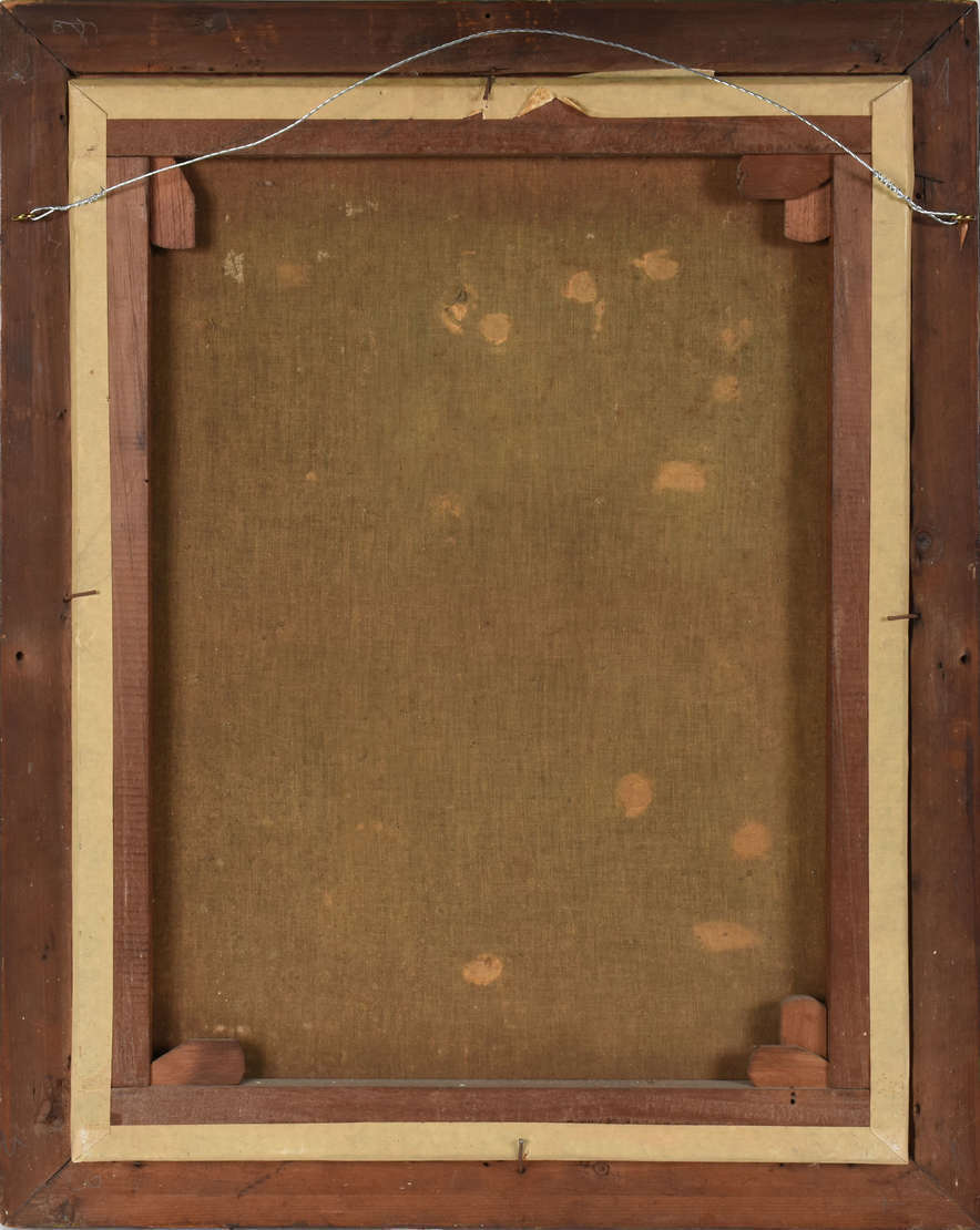 Par de antigos retratos com molduras ovais e vidros" bombé" , falhas em partes da moldura.