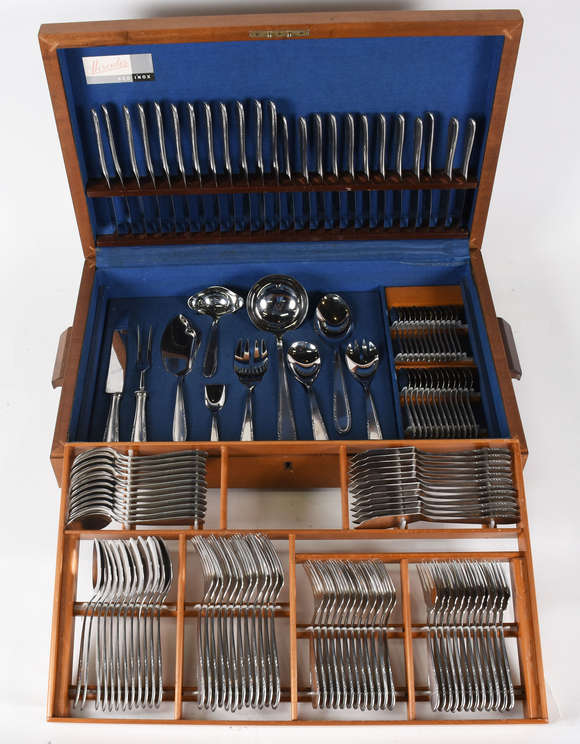 Faqueiro de aço Inox Hercules, completo para 12 pessoas , composto de 12 garfos, 12 facas, 12 colheres grandes; 12 g...