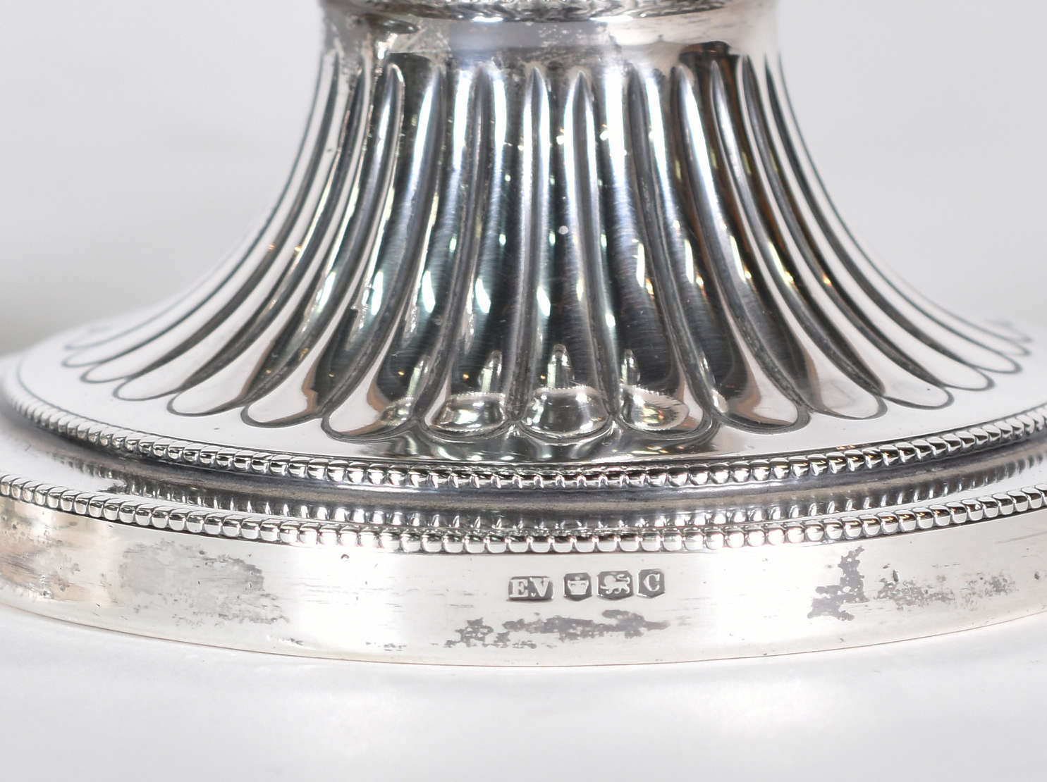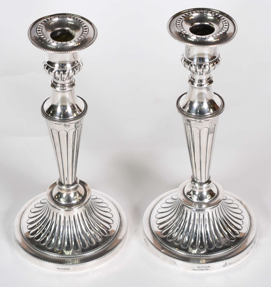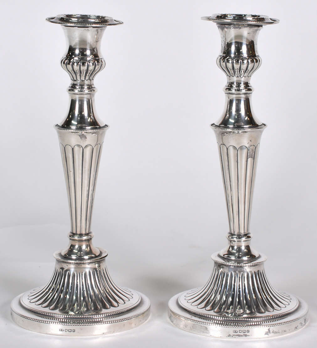 Par de castiçais de prata Portuguesa contraste águia decorados em gomos. Bobeches amassadas