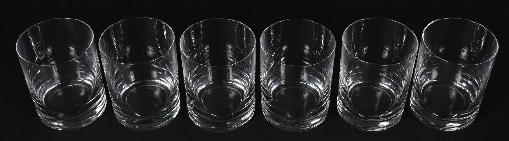 Conjunto com 12 copos para conhaque e 9 para champagne de cristal com friso dourado na borda . Total 21 peças