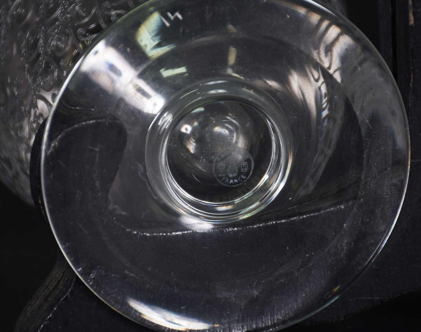 LALIQUE - Copo de cristal frances satinado com figuras em relevo. Assinado.