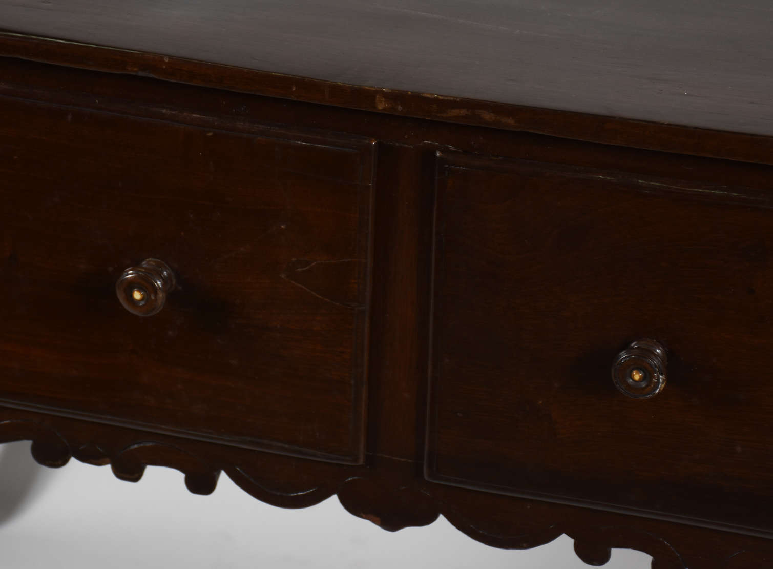 Par de mesas/aparadores de madeira nobre , Estilo Império, tampo retangular com saia canelada, pernas torneadas apoia...