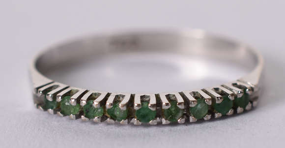 Meia aliança de ouro branco com esmeraldas . Aro 14( Por questão de segurança, a peça não se encontra na loja)