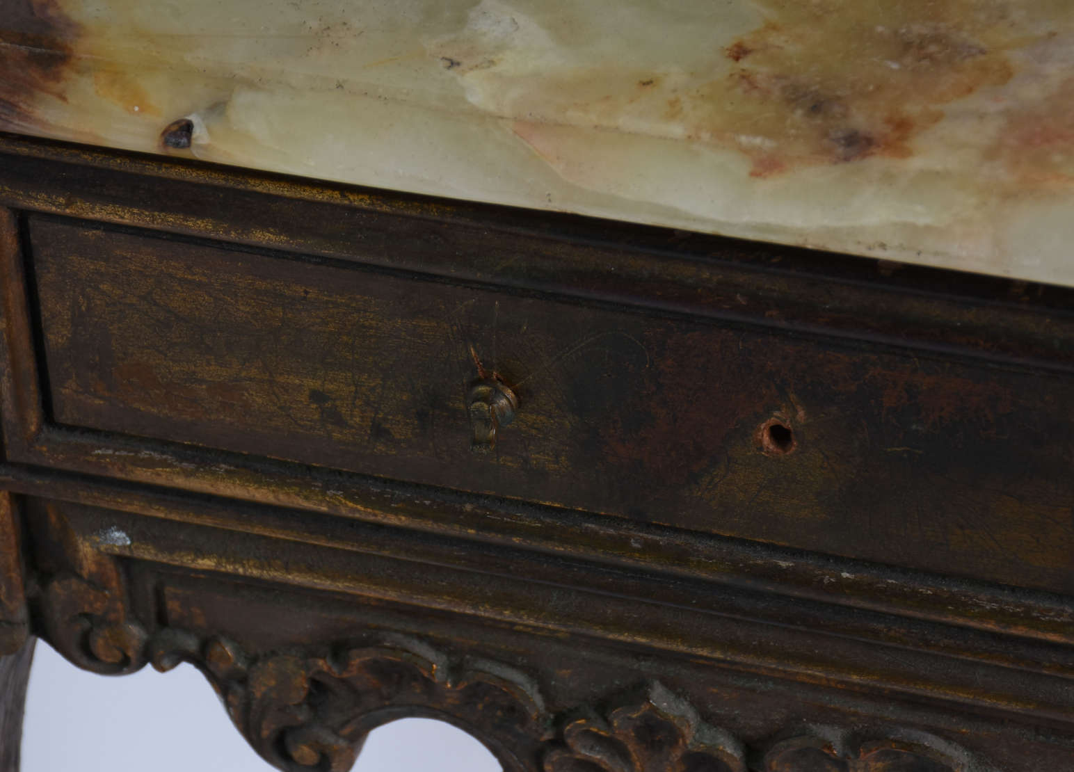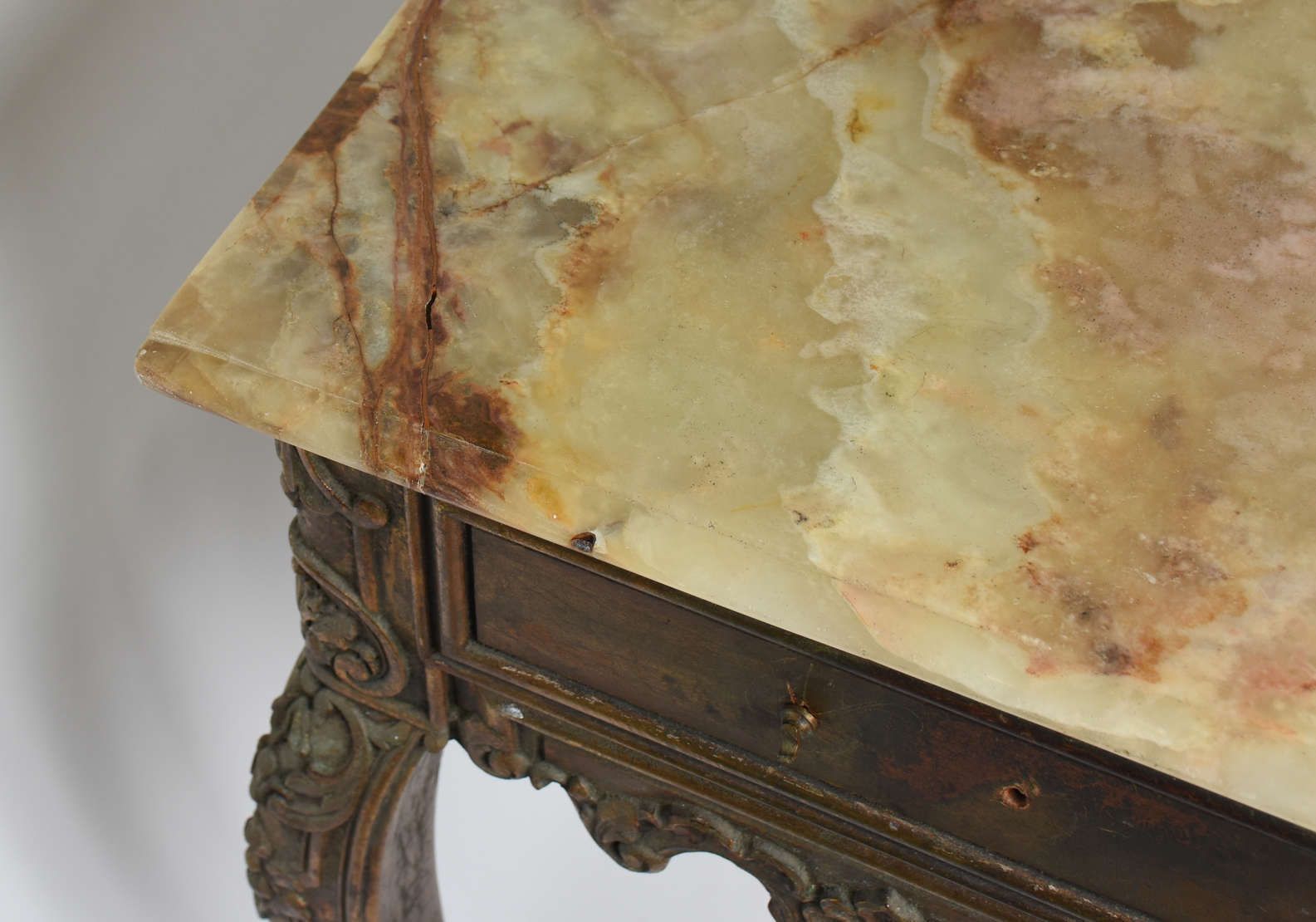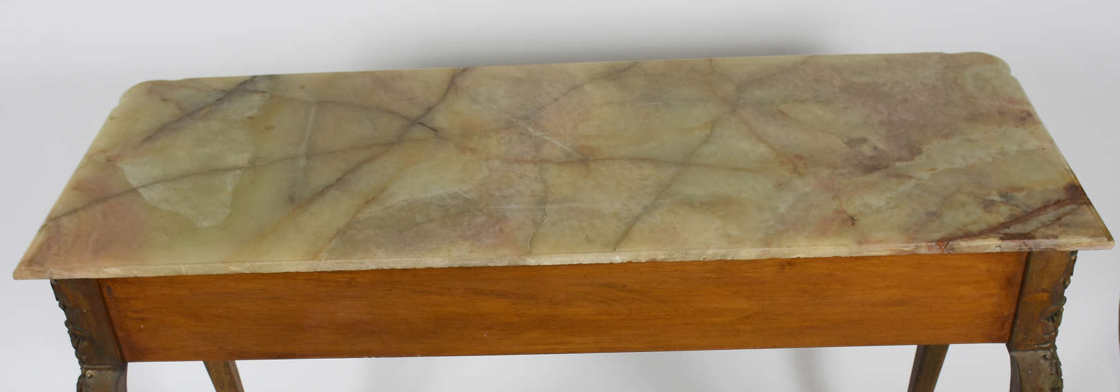 Console estilo Império de madeira nobre apoiado sobre coluna central.