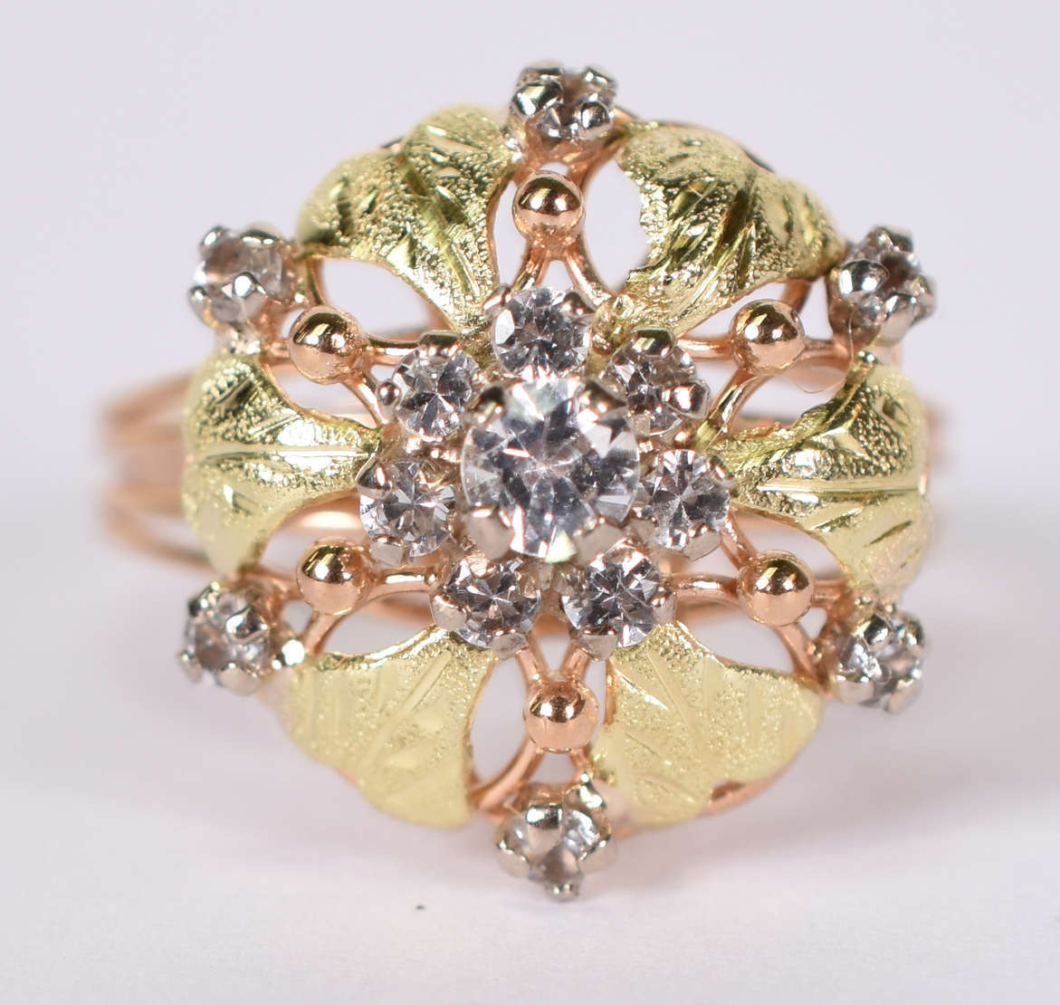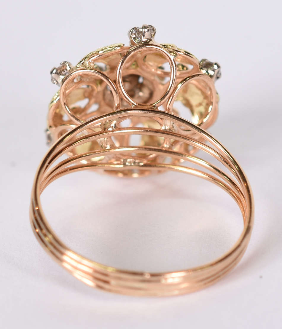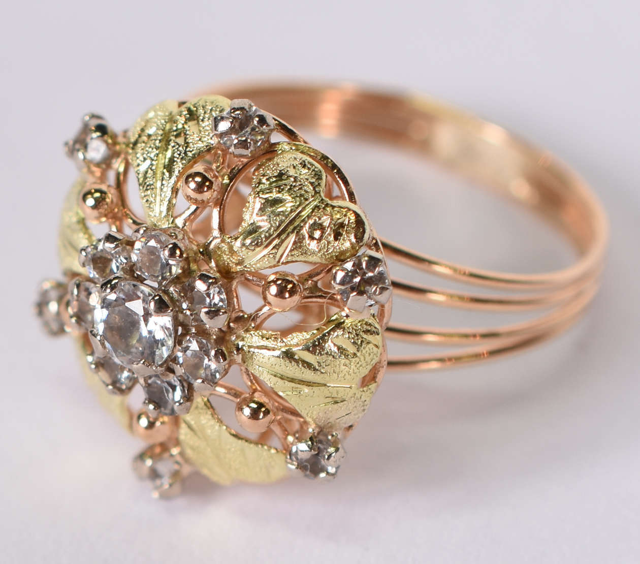 Anel de ouro rosa com 8 safiras brancas . Aro 15 ( Por questão de segurança, a peça não se encontra na loja)