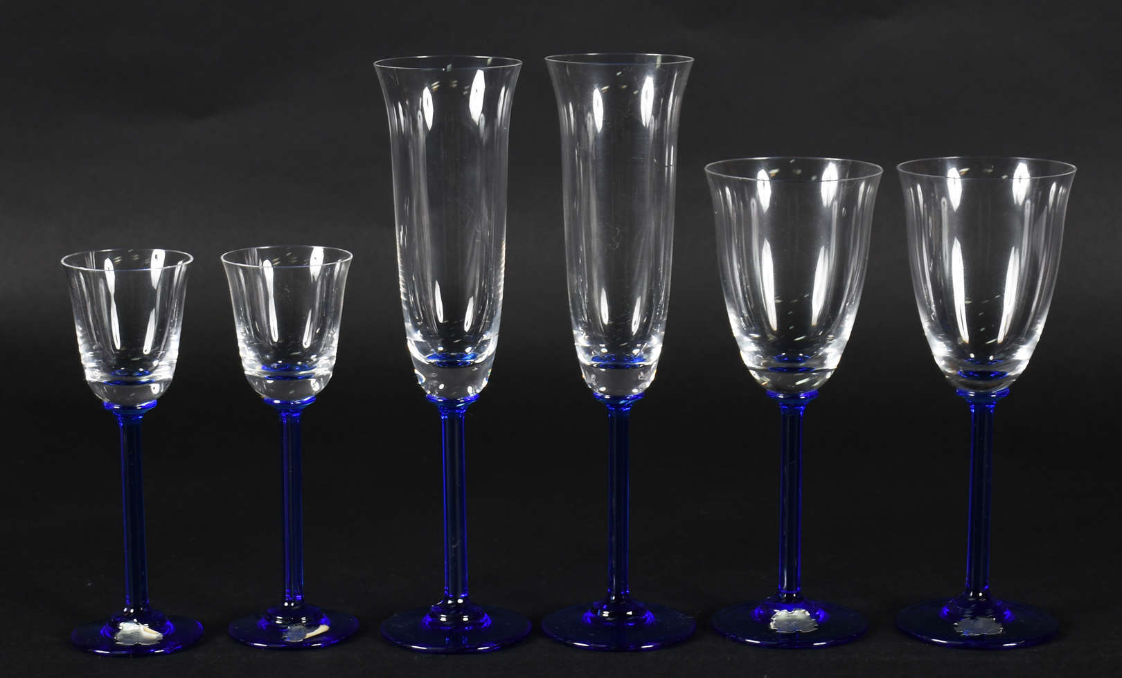 Jogo de copos , sendo 10 para vinho tinto, 16 vinho branco e 12 para licor . Total 38 peças