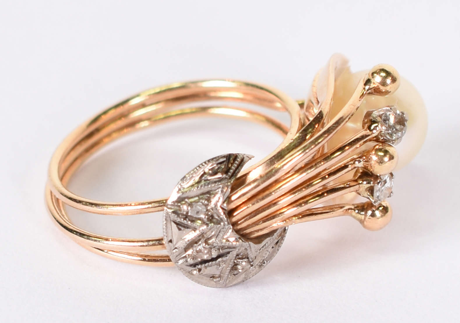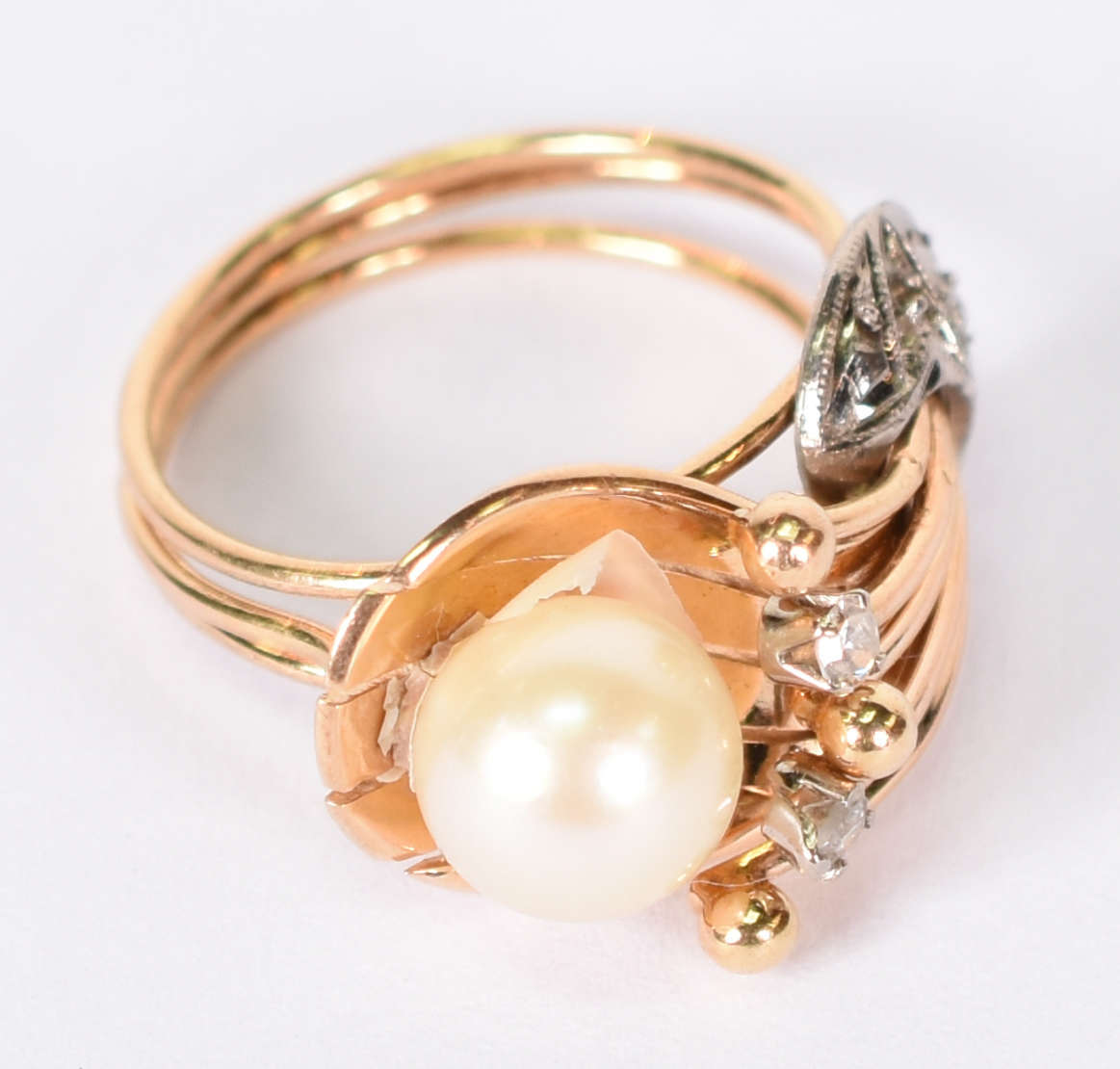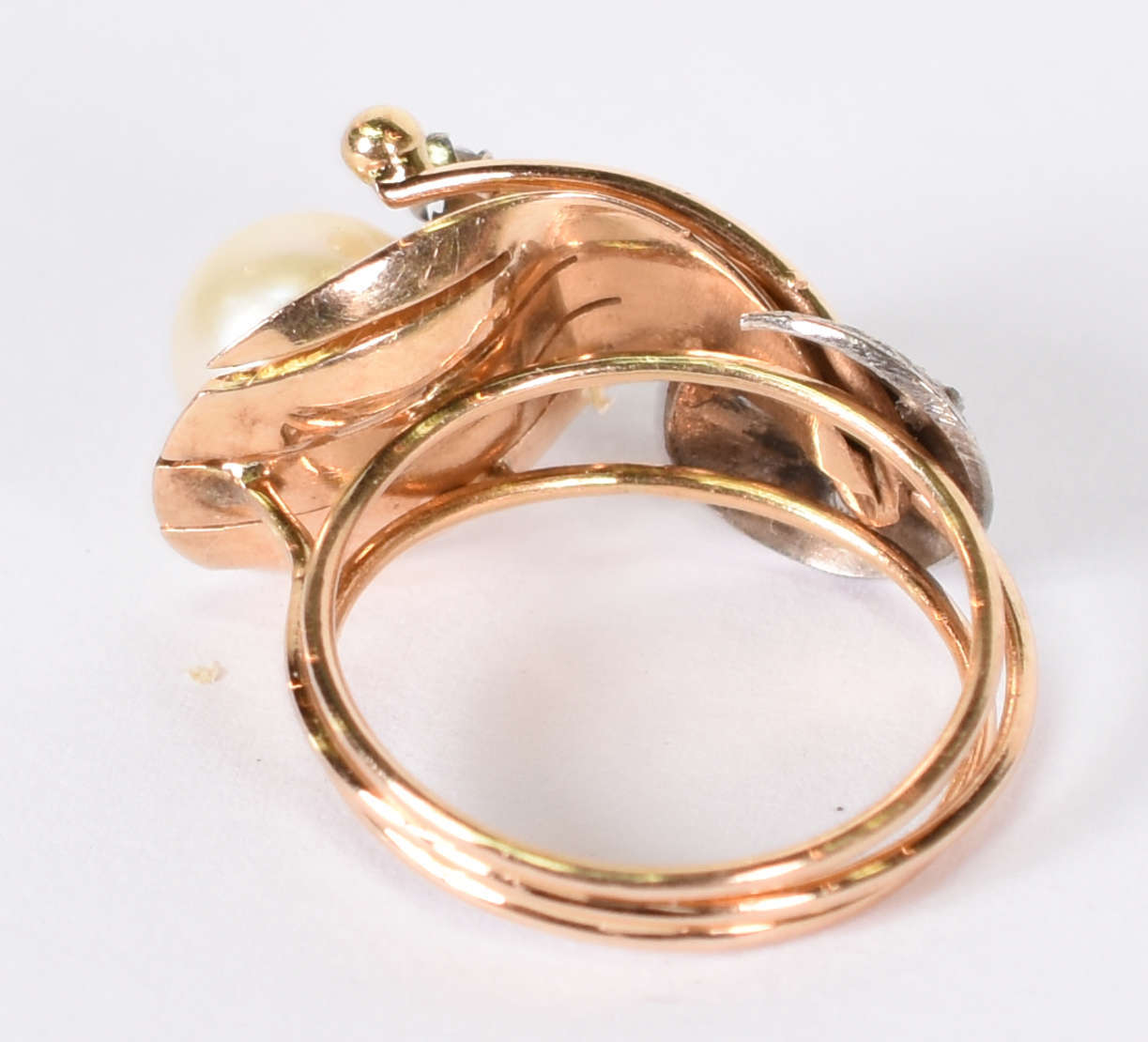 Antigo anel de ouro rosa com 5 brilhantes e 1 pérola . Aro 11( Por questão de segurança, a peça não se encontra na loja)