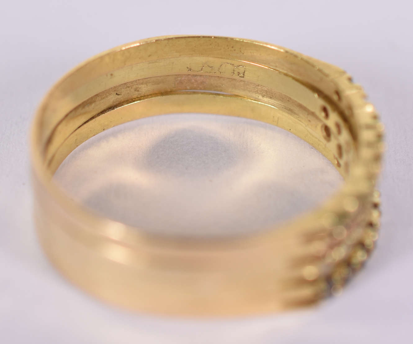 Meia aliança de ouro amarelo com 4 topázios e 3 safiras . Aro 16 ( Por questão de segurança, a peça não se encontra n...