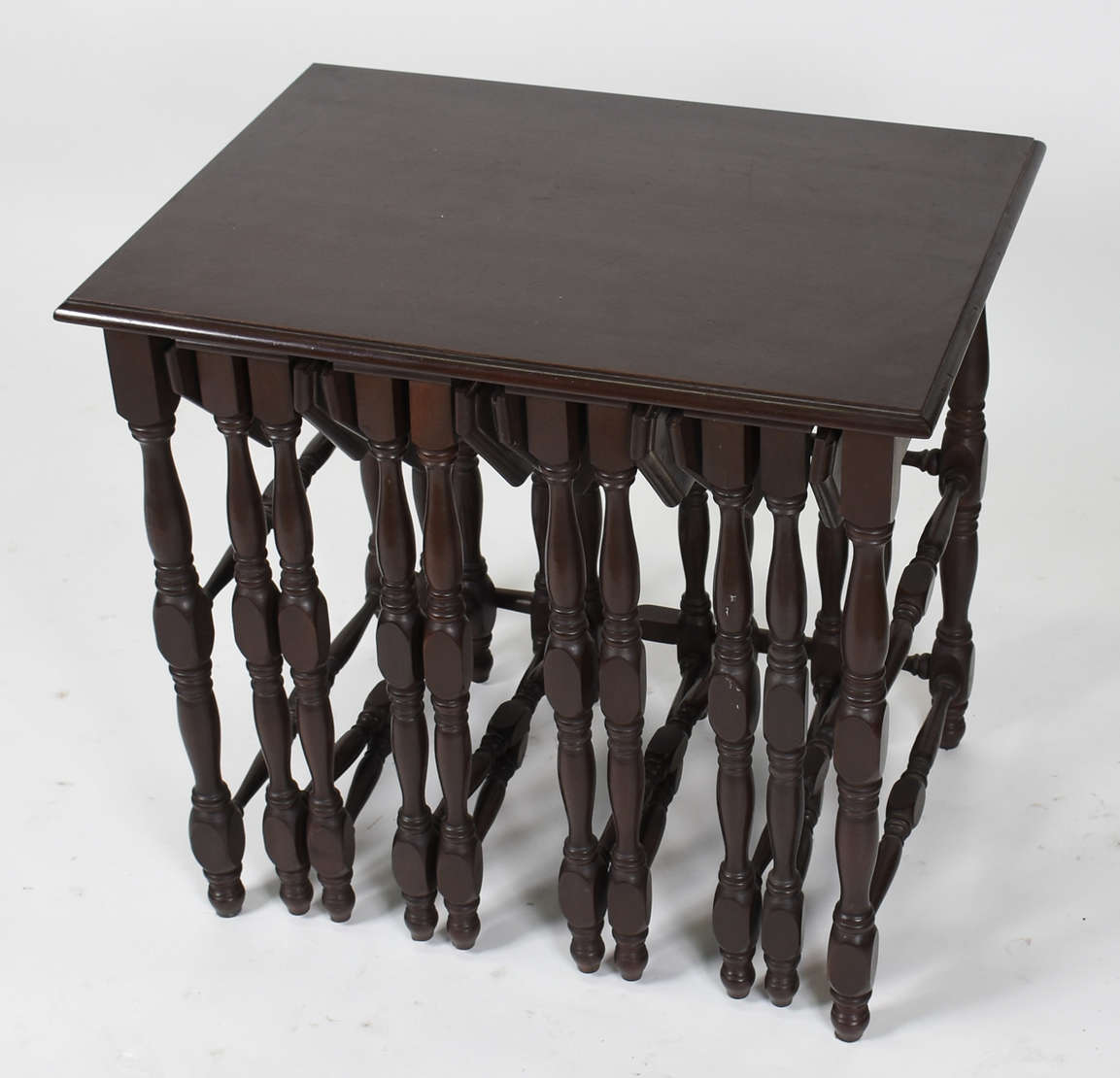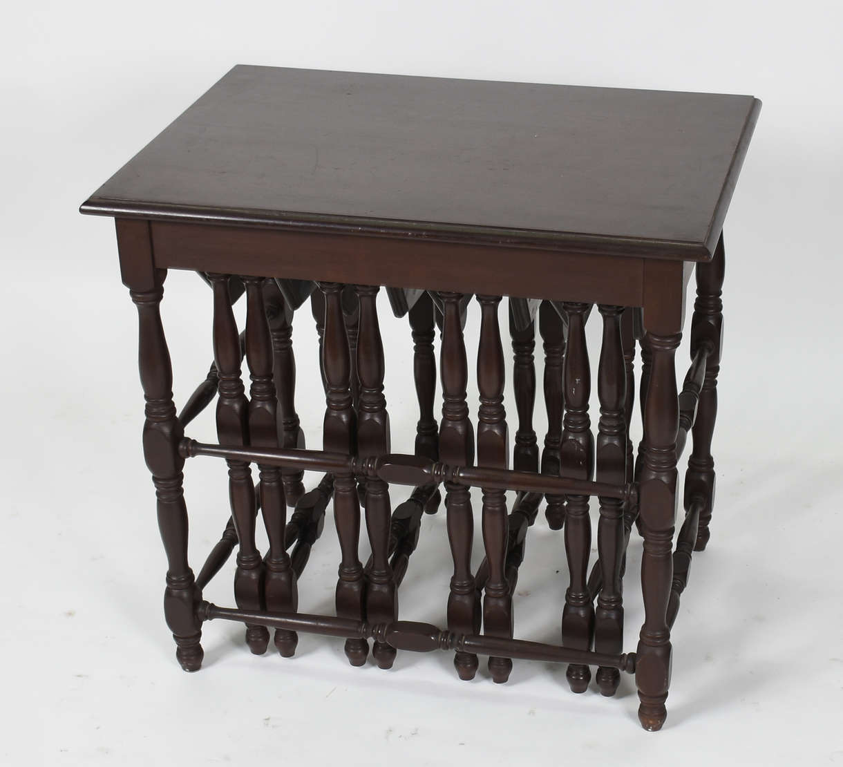Conjunto de 3 mesas de madeira nobre, estilo ingles, sendo par de laterais e uma de centro.